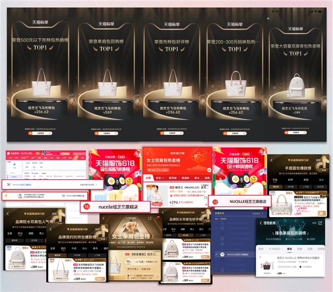 凭借沈月代言,纽芝兰不仅收获了现象级关注与口碑,更强势带动了各大电商平台的搜索与转化,发挥代言人效应成功拉动其粉丝成为品牌用户。618期间,品牌新品及爆品高频霸榜,斩获了“天猫服饰618箱包配饰销售榜”、“天猫服饰618设计师销售榜”、“托特包热销榜TOP1”、“单肩包回购榜TOP1”等多项高含金量榜单,再度夯实纽芝兰都市通勤领先品牌地位。