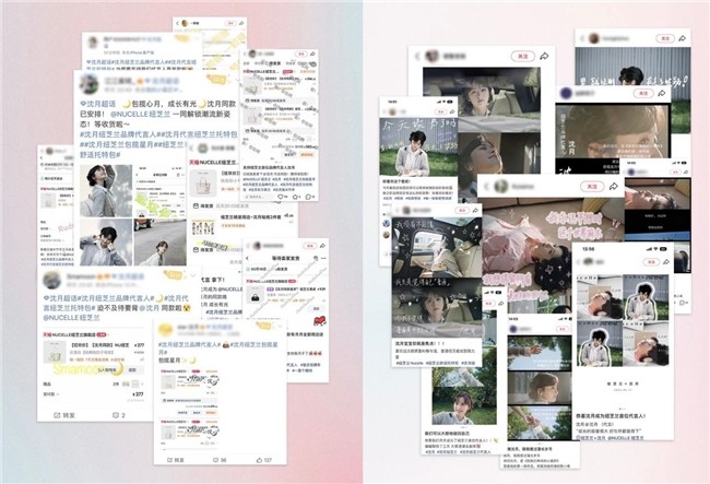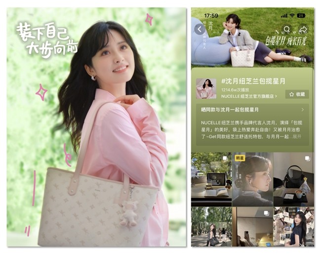 2025年5月16日,包袋品牌NUCELLE纽芝兰正式官宣演员沈月成为品牌代言人,加速完善品牌的战略布局。在618期间通过整合营销,成功将「纽芝兰舒适托特包」品类与都市女性高品质生活方式深度绑定。活动期间品牌全域声量超1.4亿,精准触达18-30岁职场女性核心群体,在618期间斩获30多个销售榜单,沈月代言首发款真皮波士包首批售罄。