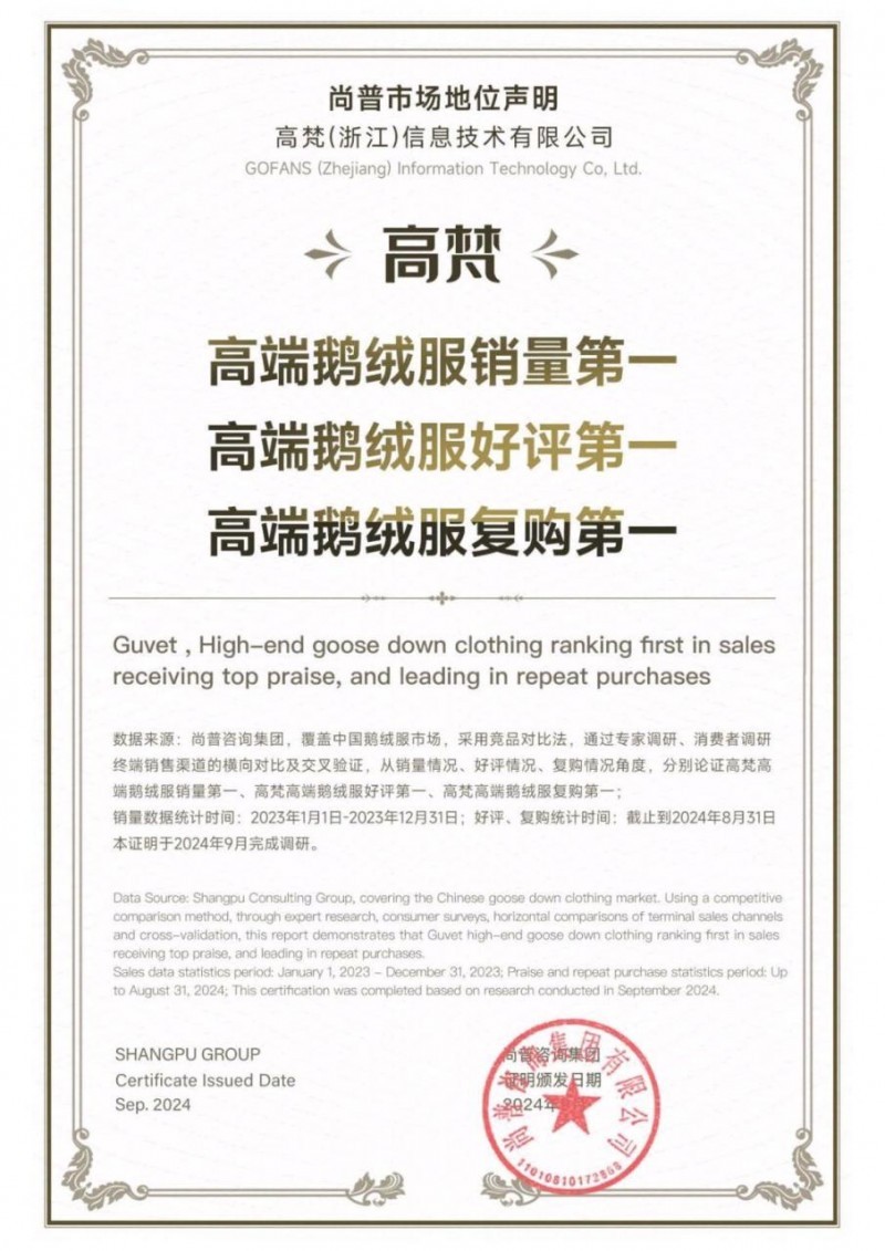 小黑金5.0的意义,远不止于一件羽绒服。它是高梵“连续三年全国销量第一”“中国服装行业国际奖项第一”的实力印证,更是品牌从“中国质造”向“全球精品”的跃迁——全球发明专利数量第一、五大世界纪录(轻暖科技、抗菌抗静电、超强抗撕破等)加持,让“高梵标准”引领行业发展。