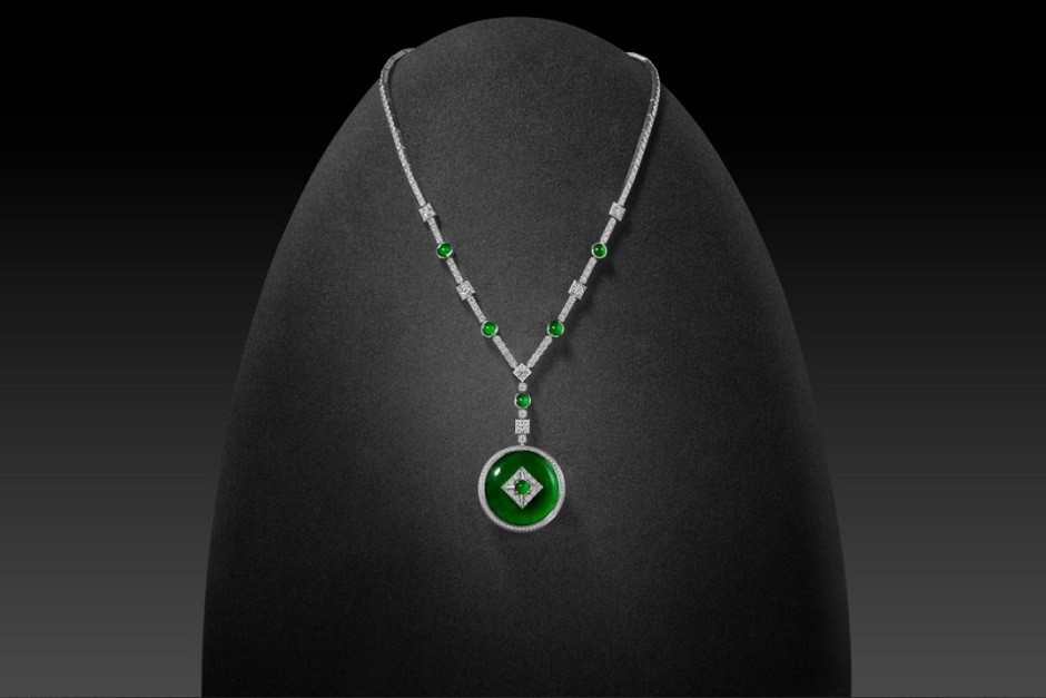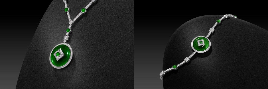 明末清初,翡翠经丝绸之路传入中国,随后茶马古道更保证了其稳定和充足供应。翡翠色泽明艳通透,犹如初春新潭,即便历经岁月洗礼,始终光华不改清透水润,令人见之忘俗。翡翠坚硬的质地,也为雕琢工艺带来新的可能,诸多繁复纹样以灵巧之姿跃然而出。因此,翡翠深得清宫皇室之钟爱,渐渐融入艺术、礼俗与哲学领域,地位日益攀升,逐渐在人们心中占据重要地位,成为了中国千年玉文化的承接者。