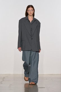 此次高级系列呈现了一种自发性、矛盾性和表现力交织共鸣的都市衣橱。核心单品定义了一种体现原始之美、植根于现实生活的着装方式——囊括背心裙、风衣、浴袍、西装外套、牛仔夹克、 Polo衫、五袋裤、长袍、工装、人字拖鞋、靴子、运动底软皮鞋、简洁设计手袋、眼镜及折叠几何耳环。