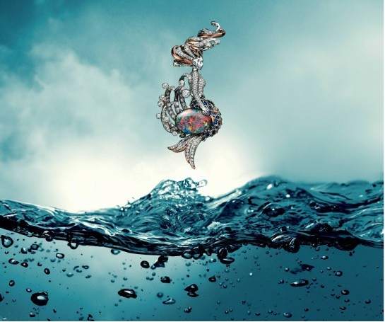海灵仙姿(Mermaid)主题以传说中的美人鱼为灵感,通过Nathalie Verdeille极富想象力的视角,完美诠释这一神秘生灵的独特魅力。其中,一款以铂金与玫瑰金打造的镶钻胸针,生动勾勒出美人鱼的灵动身姿,鱼尾处则点缀一颗重逾10克拉的黑色欧泊。同时,该主题亦呈现多款造型丰富的戒指、耳环与项链作品,每件珠宝皆是对神秘深海的礼赞。
