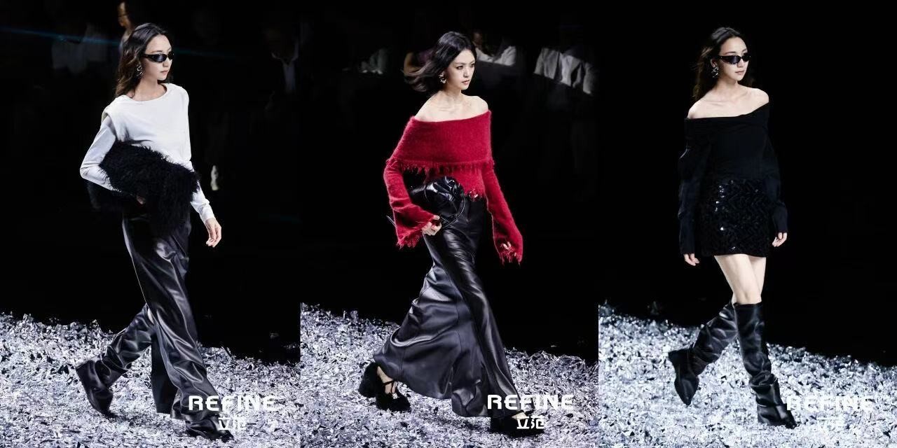 暗夜繁星下,重构女性时尚表达,本次大秀的主题,将深邃神秘与奢华极繁完美融合。色调上,黑色主导整个系列,如同夜的延伸,自带不可抗拒的吸引力;风格上,品牌打破传统审美,以奢华、极繁主义为标志,融入摩登感、过度魅力及Mob Wife美学——通过贴合身体的剪裁、细腻华丽的装饰,让服装成为“大胆自我表达”的载体,传递出颠覆性的女性魅力,精准呼应“创新、活力、现代、意趣”四大创意关键词。 品牌创意装置更成为吸睛亮点:银黑主色调与大秀主题深度呼应,黑色背景搭配垂坠亮片串饰如星光洒落,银色花艺、镜面球与金属质感装饰错落摆放,成为品牌“视觉美学”的延伸表达。 作为2021年创立的新锐品牌,REFINE立范的底气源于深厚资源支撑。品牌依托奥丽控股,以28年服装研发经验、成熟供应链与销售网络,让大秀上的亮眼设计得以高效转化为终端产品——从面料选择到工艺落地,既保证设计感,又兼顾实穿性。同时,品牌坚持的环保与可持续发展理念,也成为本次大秀的隐形亮点。设计团队在面料挑选、生产环节融入绿色思维,让时尚与环保并行,契合当下消费市场对负责任品牌的需求。 未来!品牌以理念优势:REFINE不只是做衣服,更传递闪耀独特光芒的生活态度,加上环保理念,在终端区别于其他品牌,吸引更精准的客群,登上国际舞台。中国纺织工业联合会会长孙瑞哲,中国纺织工业联合会秘书长夏令敏,中国纺织工业联合会副会长阎岩,广东省服装服饰行业协会会长刘岳屏,广州市番禺区委书记黄彪,广州市番禺区政协党组书记、主席邓耀棋,广东省服装设计师协会终身荣誉会长刘洋出席本次活动。