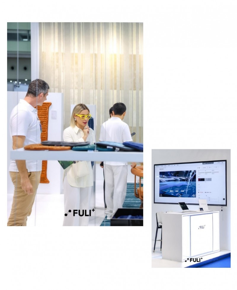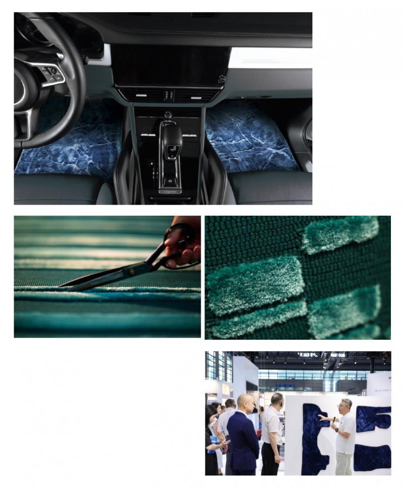 展会期间,FULI+展区成为汽车用品领域的焦点,吸引众多行业专家、车企代表与设计精英驻足交流。双方联合推出的「AUTO PADS」车用地毯系列,通过“回收-解聚-再聚合”的尖端循环科技,将废弃物转化为品质卓越的环保纱线,实现从材料源头到成品应用的全程可持续革新。