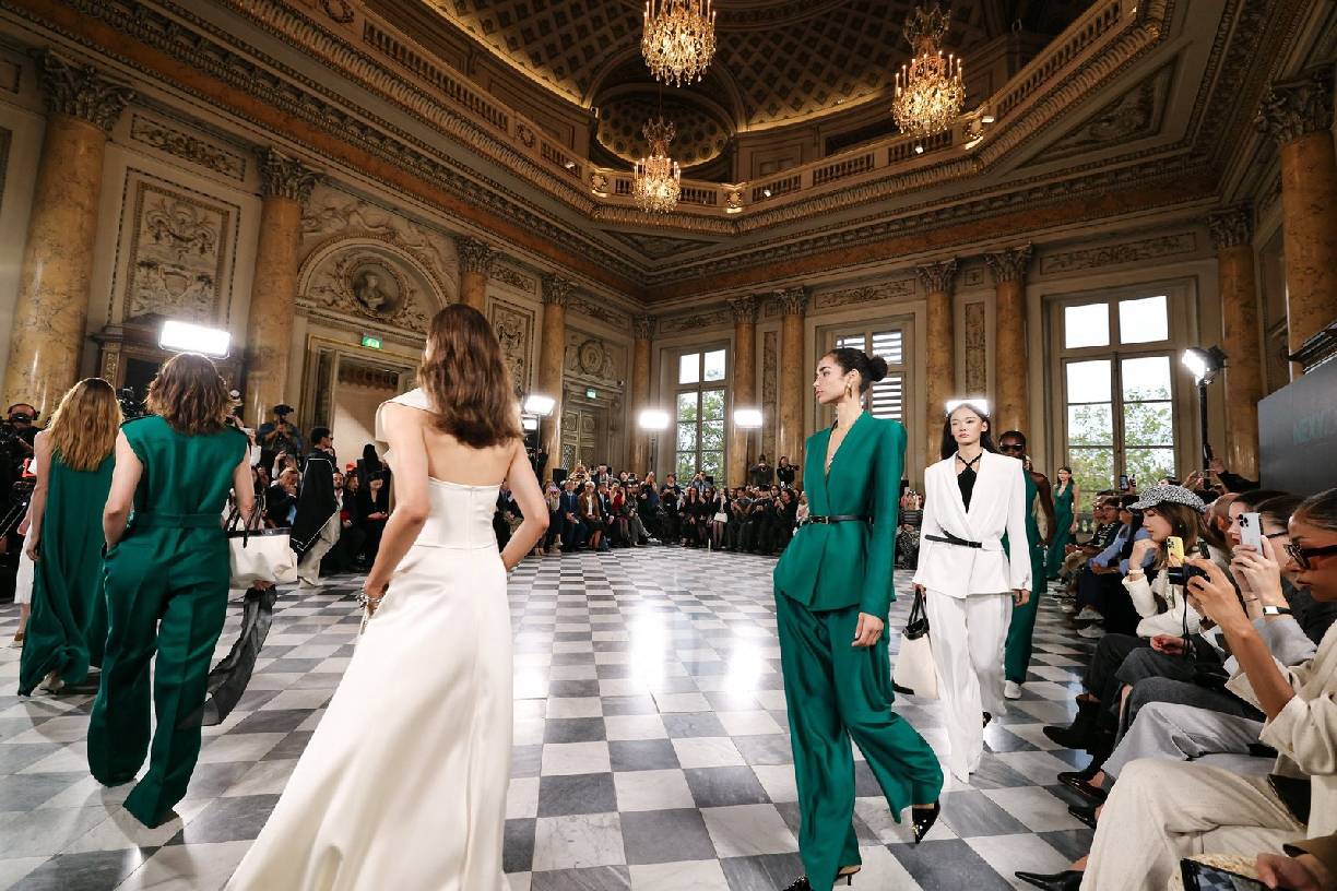 大秀以木兰的生命史诗为轴,精心铺陈四个华章: “种子” 章节以大地色系为主,仿佛木兰花的种子在大地之中静默蓄势,蕴含着无限的生命力;“生长” 章节则展现了木兰花历经风雪逆境,在早春绽放出第一抹新色的坚韧与希望;“绽放” 章节中,色彩转向NEXY.CO(奈蔻)标志性的“奈蔻绿”色,服装如同蓬勃盛放的木兰花,每片 “花瓣” 都举着光,尽显绚烂与张扬;“轻飏” 章节则描绘了风起时,木兰花瓣纷飞的画面意向,灵动而飘逸。每一刻 “木兰” 的生长,都在解构时间的维度,时装成为时光的容器,盛载着智美女性与时间共生的矜贵,以木兰之姿,将每一段岁月都酿成专属的奢华时境。