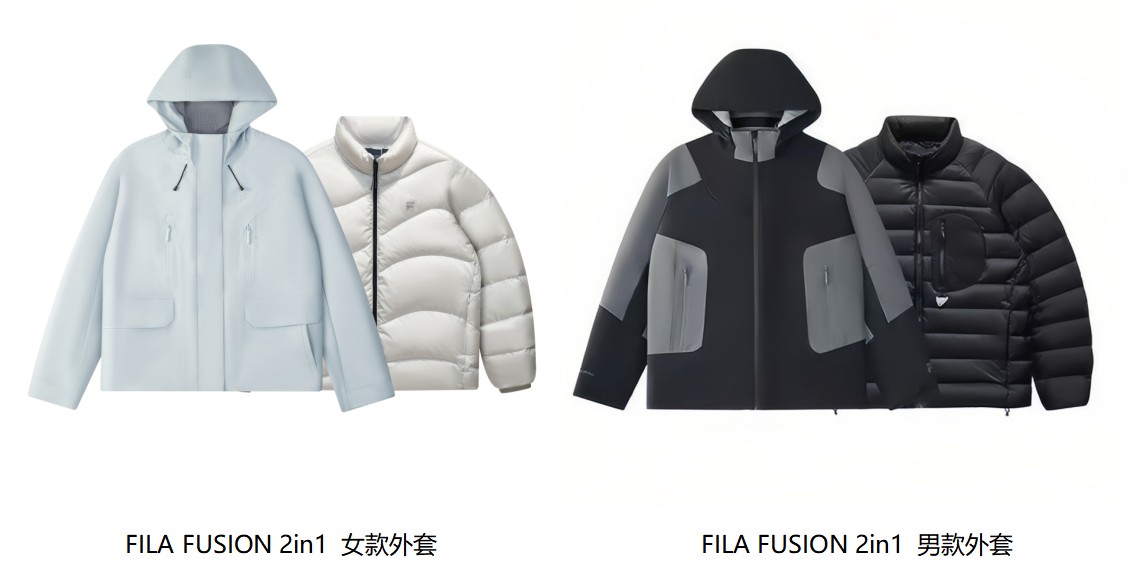 FILA FUSION以创新科技践行包容理念,通过可拆卸设计、防护面料与多元剪裁,轻松包容从都市通勤到轻户外的全场景切换,更包容每一种身形与穿着状态。本季推出的全新2in1极防羽绒服,外壳便选用了享誉全球的顶尖品牌——超轻高密Pertex®面料,具备防水、防油、防污、防风、抗撕、耐磨六重防护,无惧都市风雨与户外摩擦。