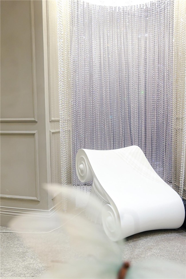 门店设计将泰国品牌的东方美学与深圳的现代气息巧妙融合,整体采用优雅灰色调,以对称的古典宫殿布局为基础,融入流畅曲线设计。入口处的罗马式圆亭饰以珠光金属漆,其下展台带动身着品牌新系列成衣的模特环绕海螺形水晶灯缓缓旋转,光影交错间,营造出如梦似幻的艺术氛围。两侧陈列区衣柜依墙延伸,柜内上方嵌入式灯箱柔和照亮服装,宛如一场可感知的时装雕塑展。