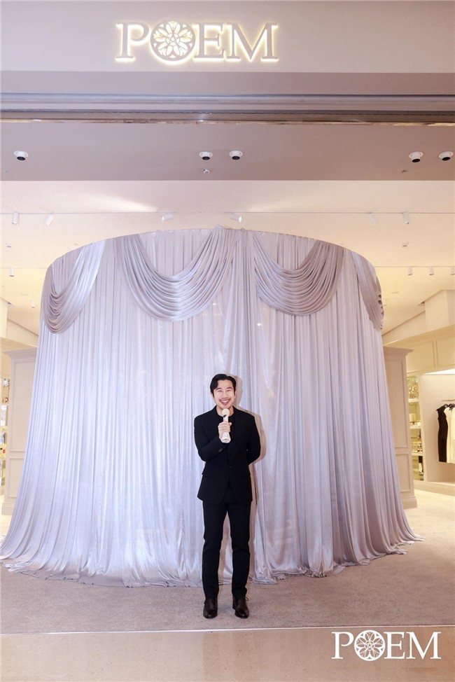 品牌创始人Chavanon Caisiri先生亲临现场并致辞,真挚分享了POEM对美的追求、对制衣传统的尊重,以及对深圳这座创新之城的敬意与热爱。随后,他与POEM品牌大中华区总经理程可仪女士共同为华南首店揭幕。在全场嘉宾的倒数声中,帷幕缓缓拉开,象征着POEM正式进入华南市场,开启全新篇章。