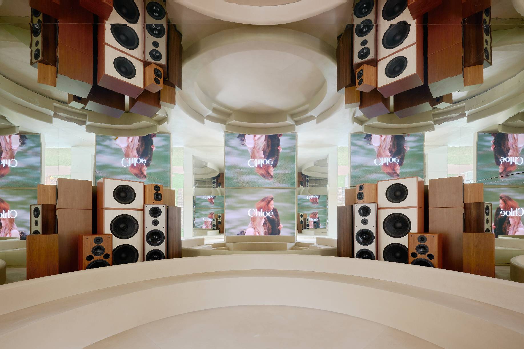CHLOÉ 帕丁顿探锁空间坐落于WYSH翡悦里核心区域。装置内部满布复古音箱的镜面空间,营造出光影和声音交织的韵律感。外墙由数万个复古挂锁构筑而成,让人不由得联想到巴黎塞纳河畔艺术桥(Pont des Arts)上承载无数心意的爱情锁。整个沉浸式空间,生动诠释了Chloé 一直以来与时尚、艺术、音乐的跨界对话与融合。