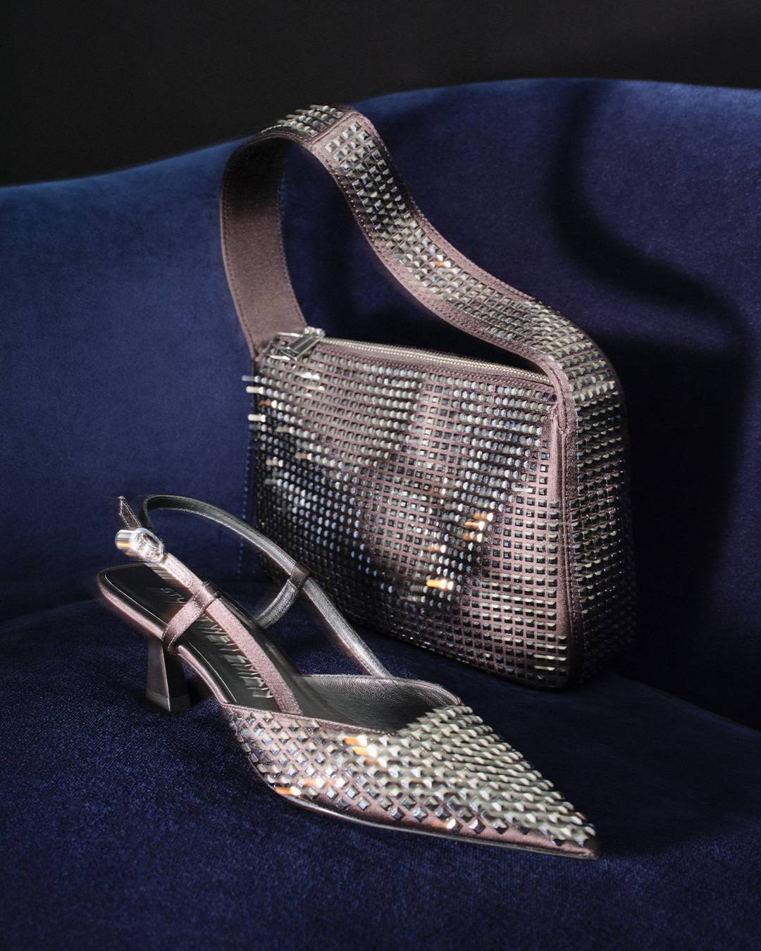 除此之外,该系列新作捕捉女性在派对季的欢庆风采,续写双面魅力的节日礼赞。“美人尖”家族再添新成员:STUARTINI 将马天尼酒杯灵感注入性感鞋跟,与经典的STUART尖头袜靴相结合,将妩媚与锋利凝于足尖;而VINNIE系列延续凌厉的建筑线条设计,5厘米雕塑感小猫跟,无论是搭载露跟鞋还是及膝靴,都彰显出精致贵气与从容姿态。