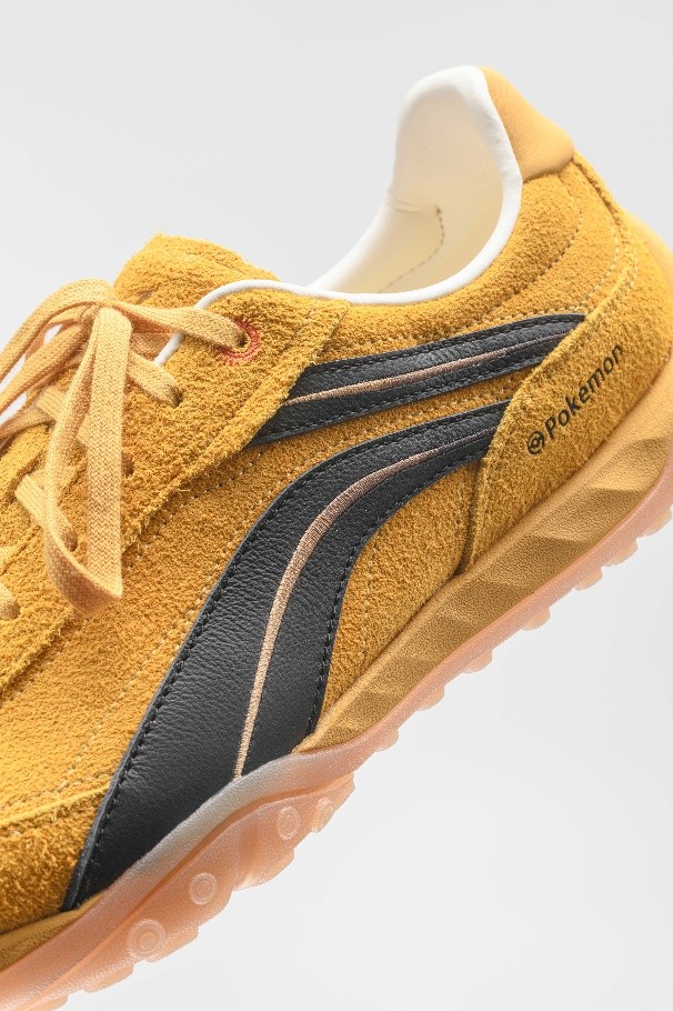 李宁心流复古薄底鞋款,融合宝可梦系列中备受喜爱的“皮卡丘”与“仙子伊布”角色形象,高品质翻毛皮材质并搭载云PLUS科技,以复古潮流质感演绎薄底流行趋势的同时,让轻量薄底也能踩出松弛步调。其中,以“皮卡丘”为设计核心的心流鞋款呈现其经典黄黑配色,设计深度挖掘皮卡丘的CP情感互动,在左右脚鞋头分别饰以男、女皮卡丘的闪电状尾巴刺绣,鞋垫则制作为皮卡丘“献花”场景,一只皮卡丘手持小花,向另一只皮卡丘“献花”,使角色跃然眼前。鞋舌与鞋尾的闪电标识与鞋头呼应,为复古搭配提供新灵感;仙子伊布以其缎带般的触角与优雅的战斗姿态深入人心,故本次联名以仙子伊布“用触角传递平和波动”的设定为灵感,将鞋身设计为芭蕾少女风格。将丝绸材质的蝴蝶结作为核心设计元素,可拆卸的脚踝缎带,模拟仙子伊布缠绕训练家手臂的亲密互动。丝绸材质的蝴蝶结,还原宝可梦图鉴中“摇曳触角起舞”的梦幻形象。褶皱花边领口、IP鞋带饰扣、鞋带与鞋后跟处所配可拆卸蝴蝶结,设计以创意灵巧的方式打破运动鞋与时尚的边界,通过仙子伊布“优雅中蕴含力量”的角色特质,唤醒少女心的“战斗优雅”。