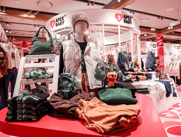 日本东京里原宿街头品牌A Bathing Ape®的年轻女装支线APEE,阔别多年后以全新姿态回归。作为品牌创始人NIGO打造的亲民支线,APEE锁定12-18岁Z世代潮流少女,并非复刻经典,而是以心形、迷彩、豹纹为核心设计元素,融合经典BAPE街头基因与少女可爱魅力,开启由心而发的时尚革命——这不是复古,而是进化,旨在陪伴女孩用勇敢潮流态度释放自我。