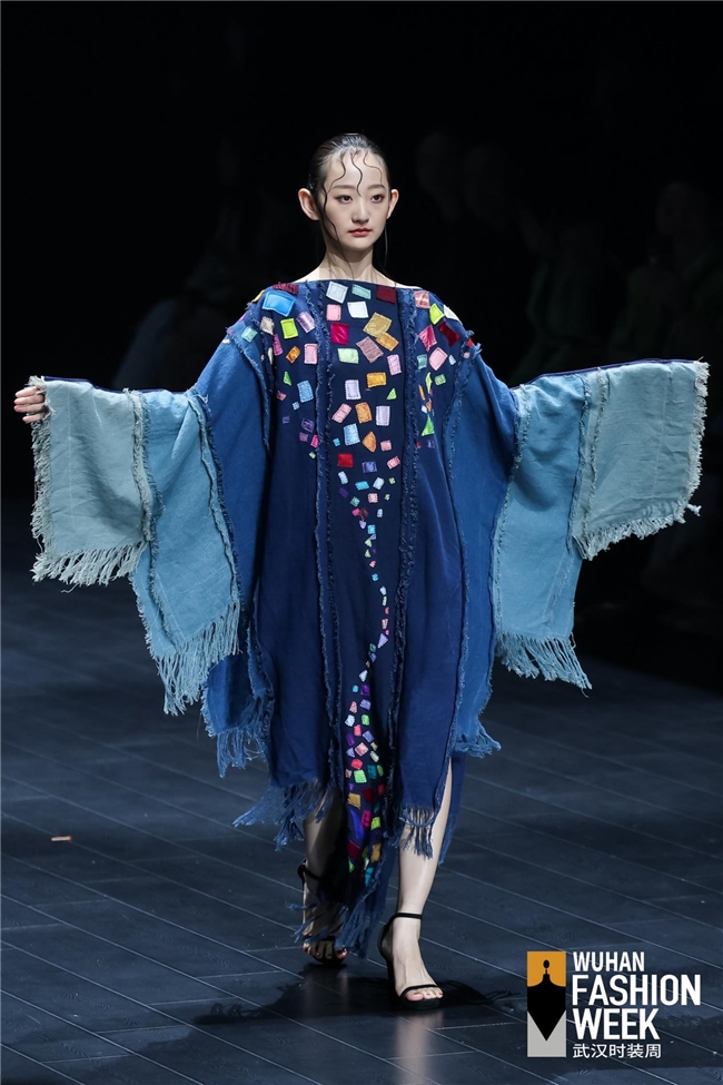 “本季系列我以‘补’为灵感,通过蜡染技术将处于生命周期末尾的布料进行二次创造。希望在蜡刀的勾勒下完美展示宁航蜡染质朴的‘物尽其用’哲学,唤醒了人们对物质、对传统、对生命的重新认知。”谈及品牌发布,成昊直言:“我们就是想为非遗‘正名’,改变大众认为蜡染‘土气’‘过时’‘仅是旅游纪念品’的刻板印象,让武汉乃至全世界看到,中国传统手工艺已拥有与国际对话的时尚表现力,蜡染的‘蓝白之韵’正绽放出惊艳世界的光彩。”