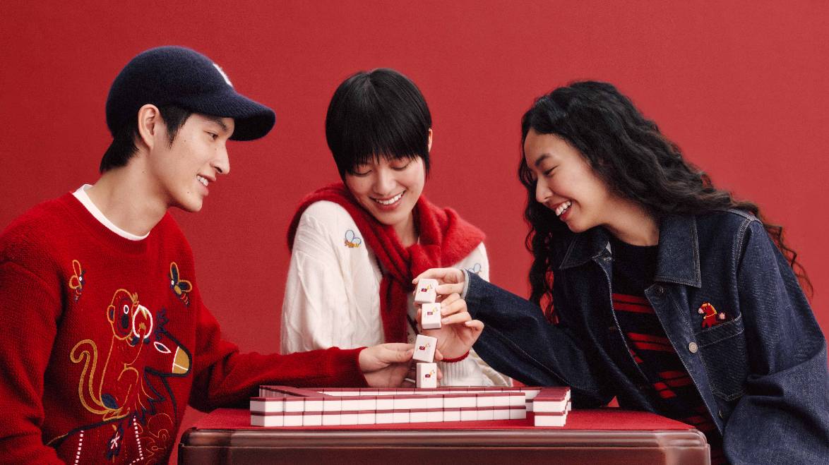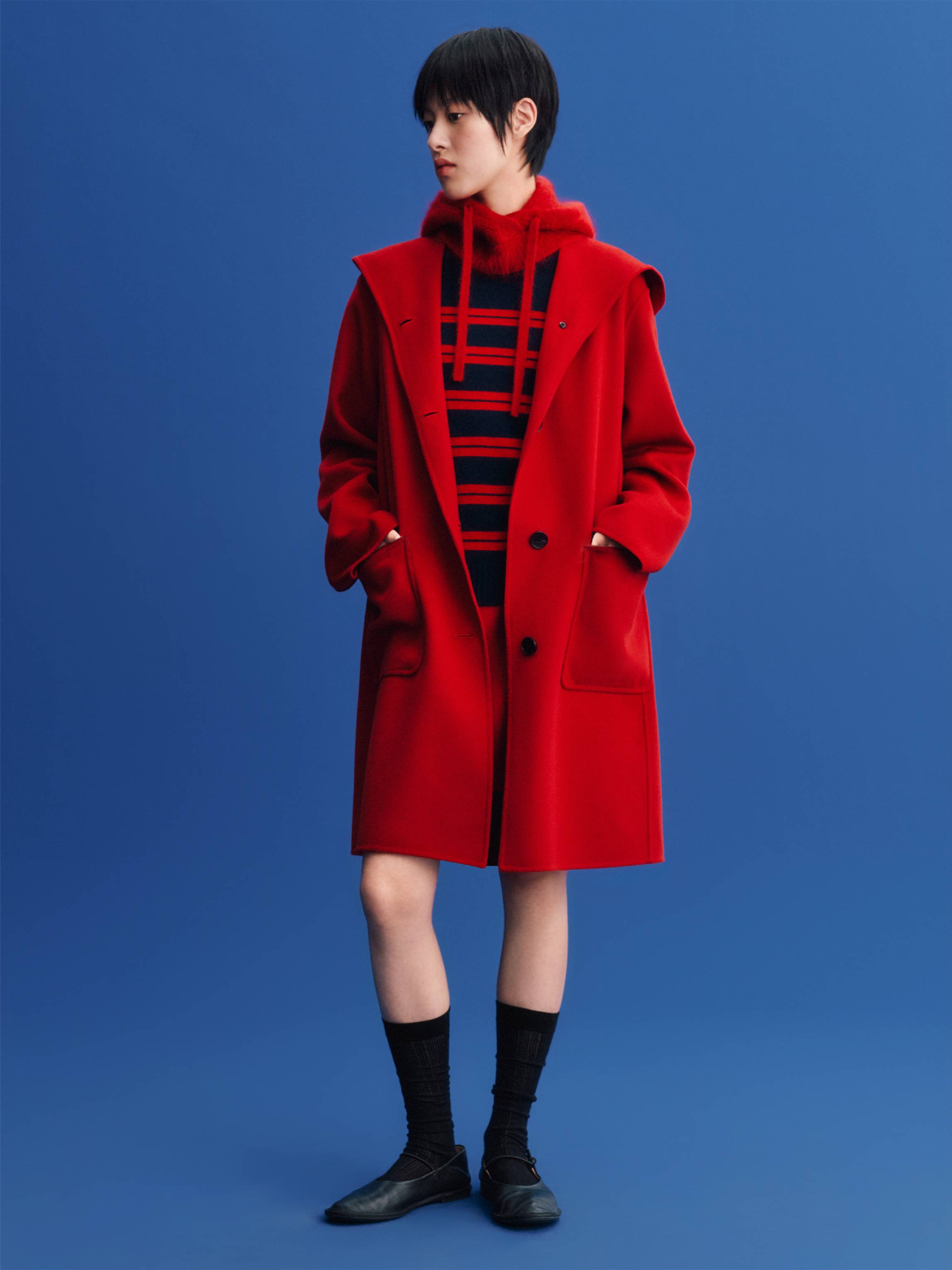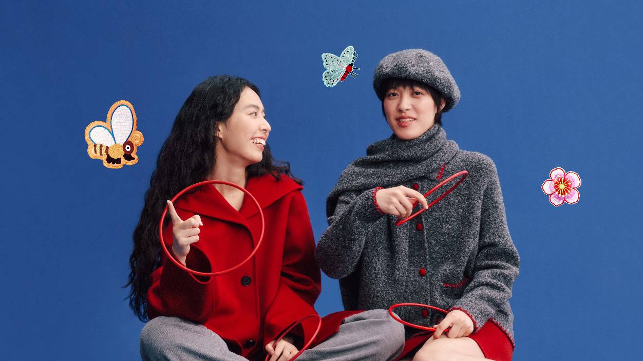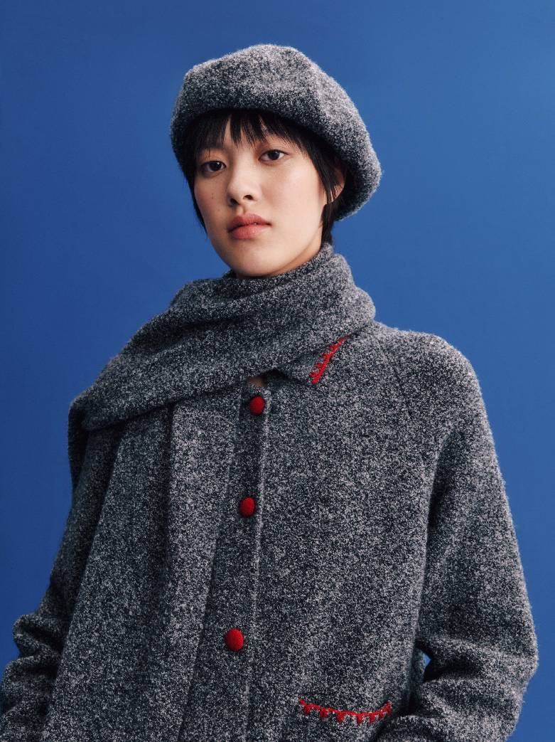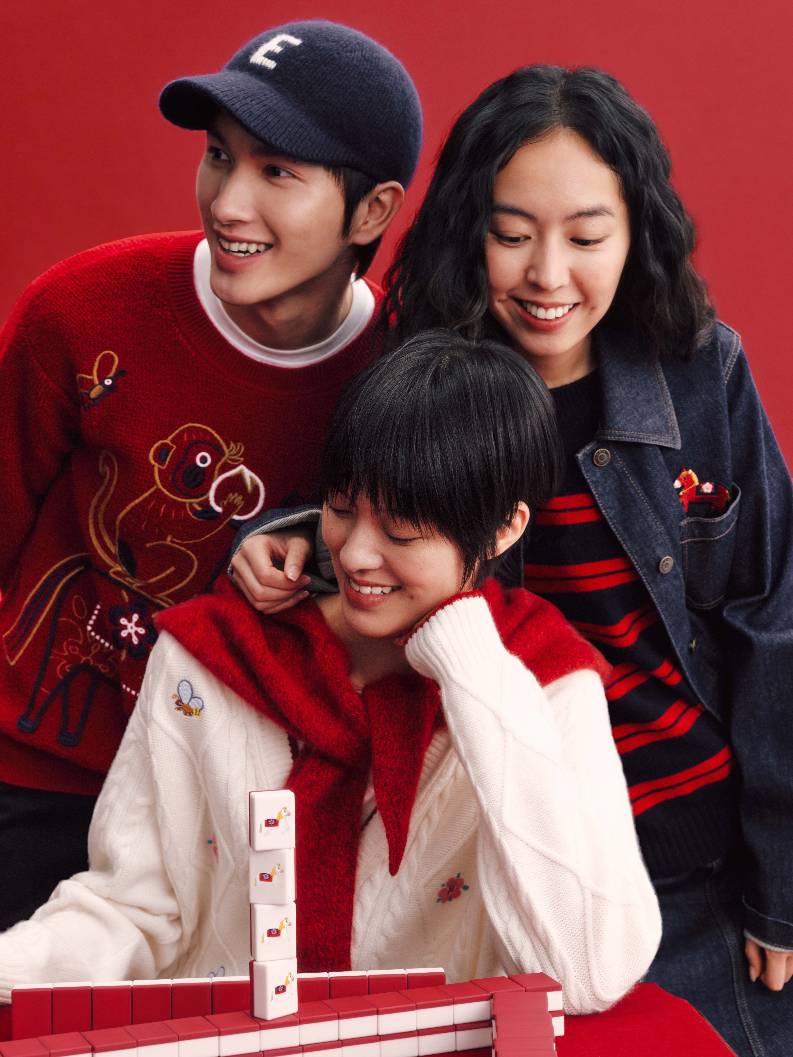 新年团聚的温情,与本系列的舒适哲学相融,共同诠释轻松愉悦的节日着装语境。羊毛双面呢开衫、棉质斜纹卫衣、水洗牛仔过膝裙与裤装,搭配拉毛围巾、棒球帽与报童帽等配饰,呈现出一系列兼具复古气息而松弛态度的新年着装。正红基调延续热烈而饱满的传统表达,米白、深蓝与深灰的融入,平衡出沉稳而现代的色彩层次。精致刺绣与羊绒条纹巧妙呼应,在工艺与材质中交织传统与当下,呈现出一系列兼具文化厚度与审美温度的新年着装——以一年一度的新衣仪式,开启共同憧憬的锦绣前程。