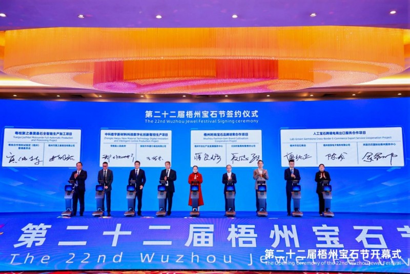 12月19日,以“智创梧州宝石潮领时尚未来”为主题的第二十二届梧州宝石节开幕。市委书记蒋连生,中国珠宝玉石首饰行业协会会长叶志斌,广西国际博览事务局党组成员,副局长梁艺光出席开幕式并致辞。市政协主席黄振饶,深圳市工业设计行业协会会长封昌红,北京时尚控股有限责任公司党委书记,董事长顾伟达,中国珠宝玉石首饰行业协会副会长兼秘书长毕立君,越南宝石协会副会长吴世学,市宝石商会会长潘旭平,香港贸易发展局广州代表何俏媚,北京时尚控股有限责任公司党委常委,副总经理段体玉等领导嘉宾出席开幕式。市委副书记,常务副市长汪东明主持开幕式。