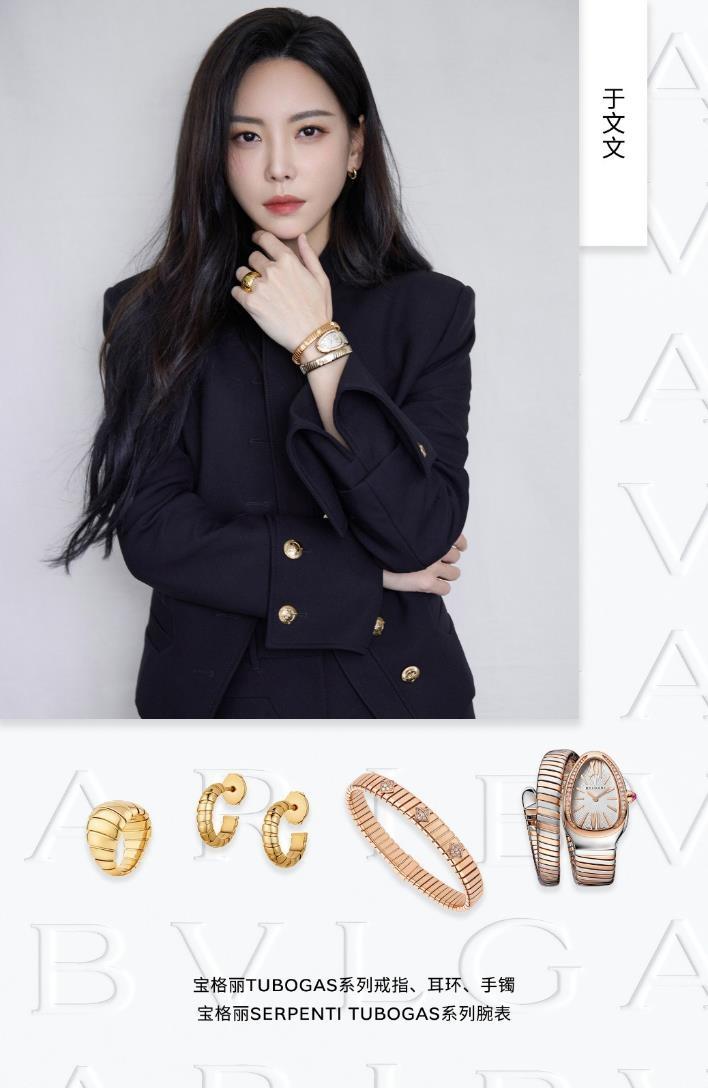 鎏光熠彩,点亮节日风尚。佘诗曼以Tubogas系列作品叠搭Monete、Bvlgari Bvlgari及B.zero1系列经典佳作,标志性螺旋曲线流转腕间颈畔,如金色暖阳般闪烁鎏光色泽。姚晨以Tubogas系列手镯及Serpenti Seduttori鎏光蛇影腕表相映成韵,灵蛇之姿翩然绽现,“蜕变与新生”的盎然力量萦绕身畔。秦岚则以Tubogas系列项链搭配B.zero1系列耳环,绽放优雅自信的女性魅力。陈都灵以Serpenti Viper系列项链搭配B.zero1系列耳环,如光跃动,点亮璀璨节日季。