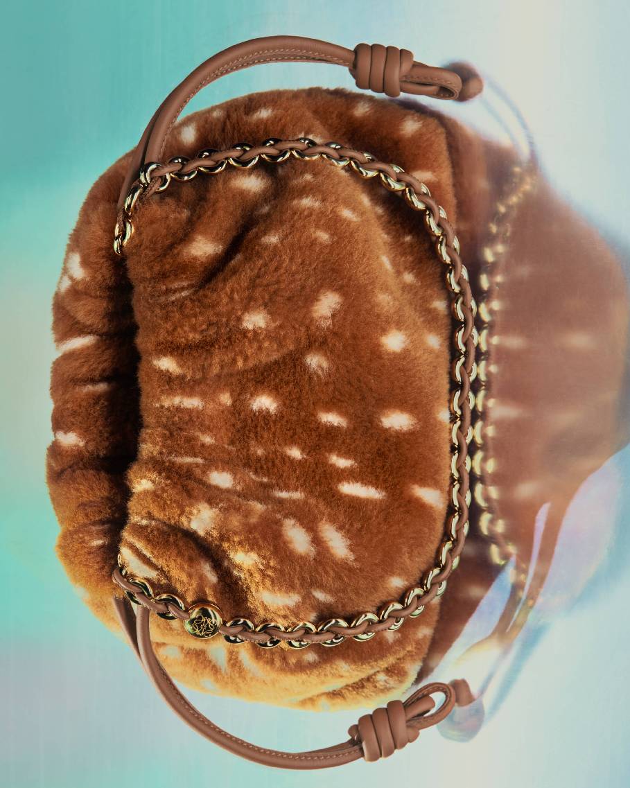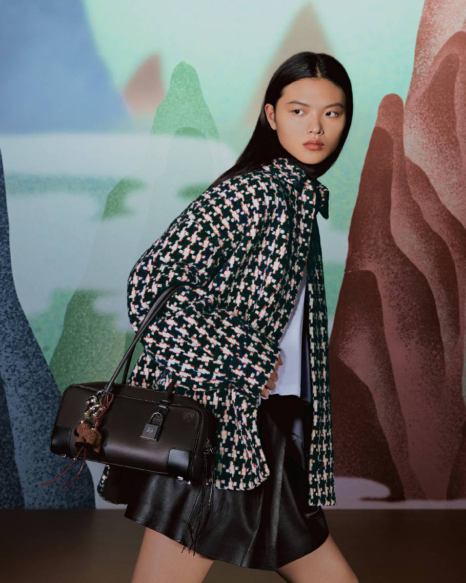 汲取马的精神意象,新春系列呈现多款LOEWE罗意威标志性手袋,包括Puzzle手袋与 Amazona 31 Cropped手袋,点缀以灵感源自马鬃的手工打结流苏与穗饰;挂饰与挂骰亦 化作灵动可爱的小马,诠释品牌一以贯之的手工艺趣味。新春系列亦包含王一博于动画创意片 中亮相时穿着的皮革衬衫外套,将于中国指定精品店发售。同期发布的广告大片由摄影师 Nick Yang掌镜,LOEWE罗意威全球品牌代言人王一博出镜演绎。模特魏依婷的呈现亦为 大片延展出丰富的视觉层次。