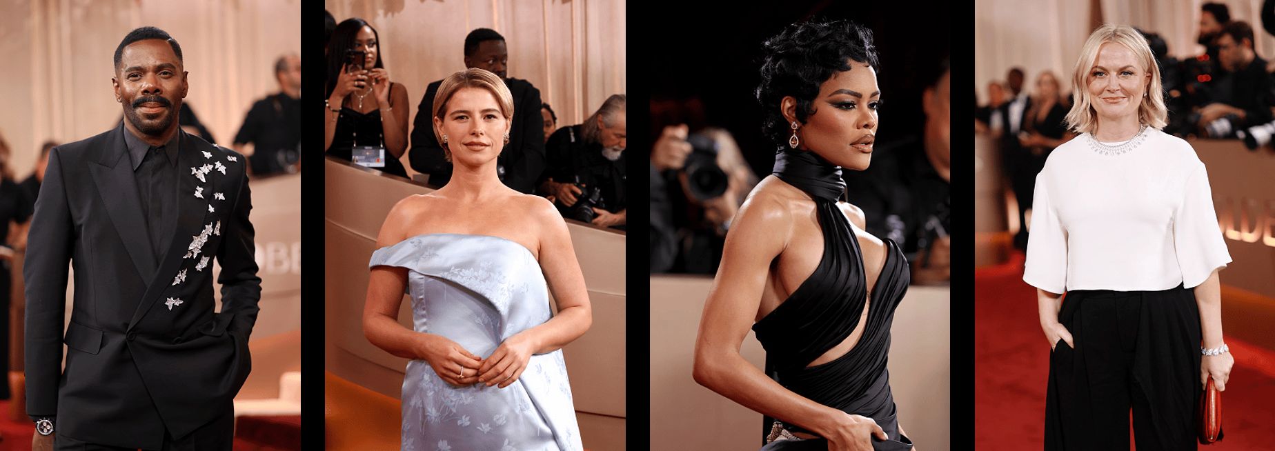 第83届金球奖红毯上众星演绎天然钻石之美,从左至右:科尔曼·多明戈(Colman Domingo)、杰西·巴克利(Jessie Buckley)、缇雅娜·泰勒(Teyana Taylor)、艾米·波勒(Amy Poehler)