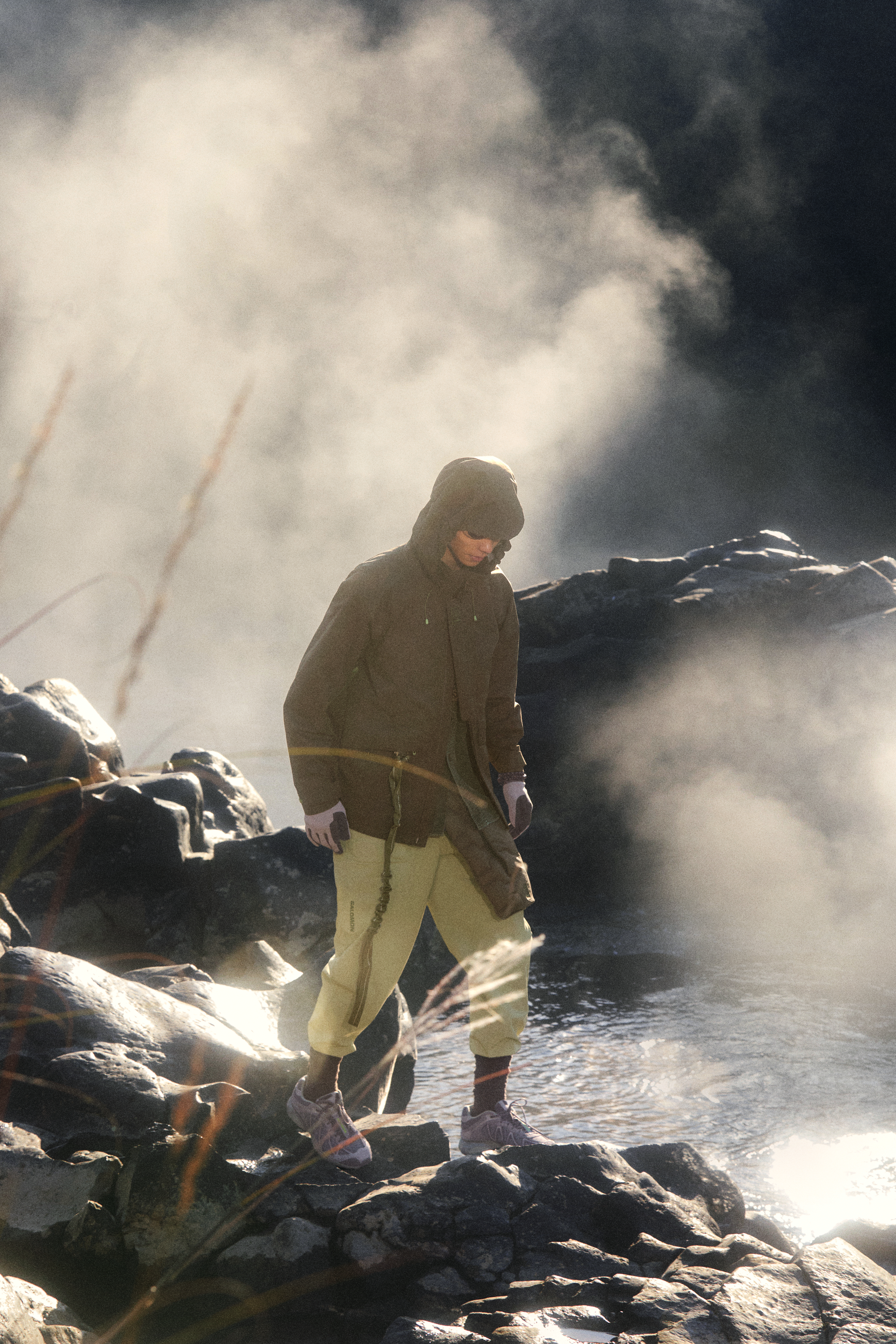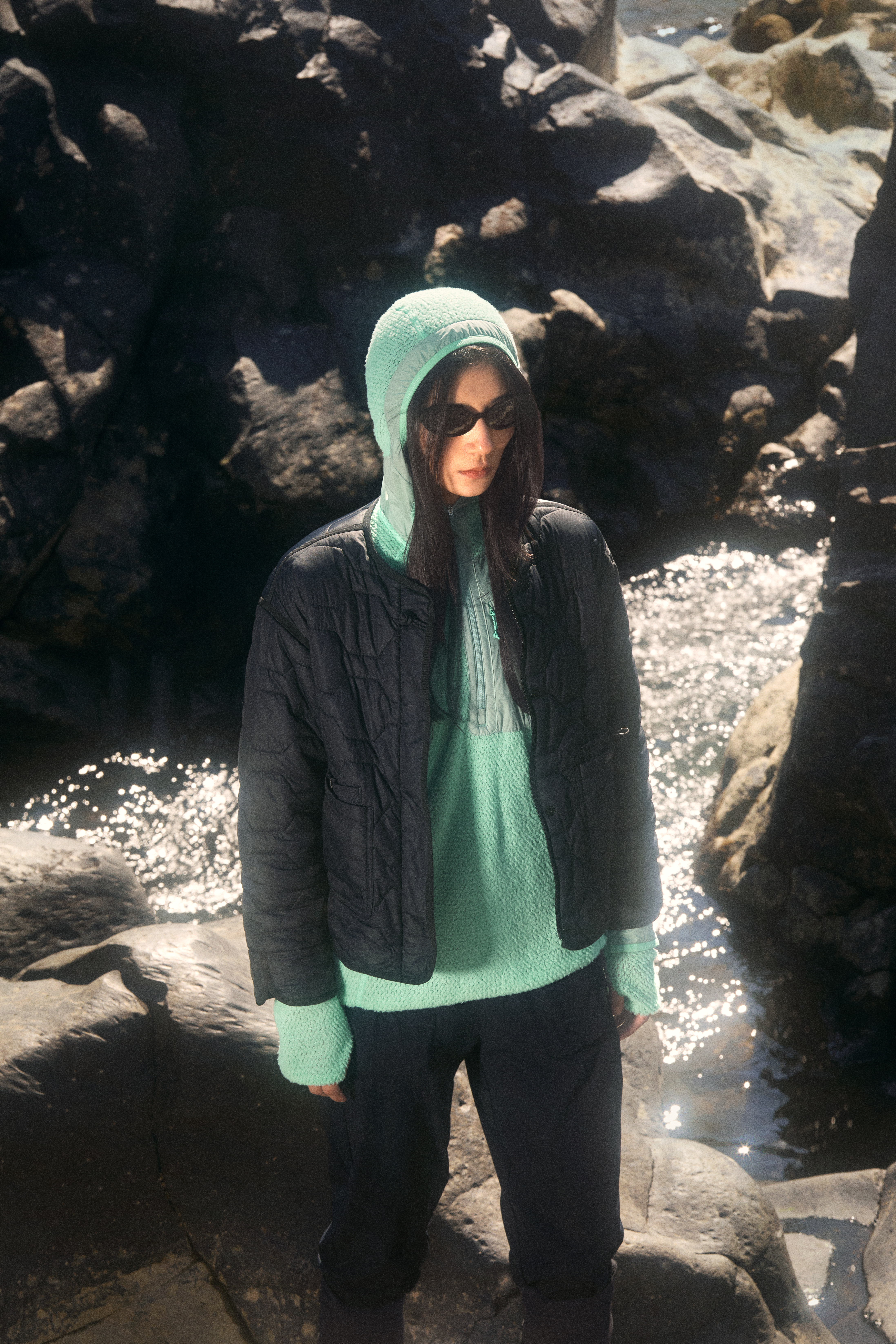 Salomon茶马古道系列女士夹棉外套将古道上的自然意象与行走哲思融入现代设计,并加以“马”变形文字,为夹克注入亮点。外套采用Pertex Quantum防泼水表布搭配Primaloft科技填充棉,提供卓越保暖性能,并集成防风、透湿科技功能。设计强调机能性与文化呼应:可拆卸帽子适应多场景;领口中国元素扣子与口袋“茶马古道”小标点明主题;内外双层口袋辅以松紧带增强储物安全;大身采用多边形绗缝进行固定,融合时尚与功能;侧缝下摆开叉提升活动自由度。外套提供各具意境的两款配色:大地绿款灵感源于茶山新芽与澜沧江水,鼓励穿着者在徒步中与自然深度对话,聆听风声、蹄声与心跳的共鸣;茶马黑款则如深邃夜空,象征在静默中向内探索,以专注的每一步回应内心的召唤,寓意“心有回响,诸事皆成”。
