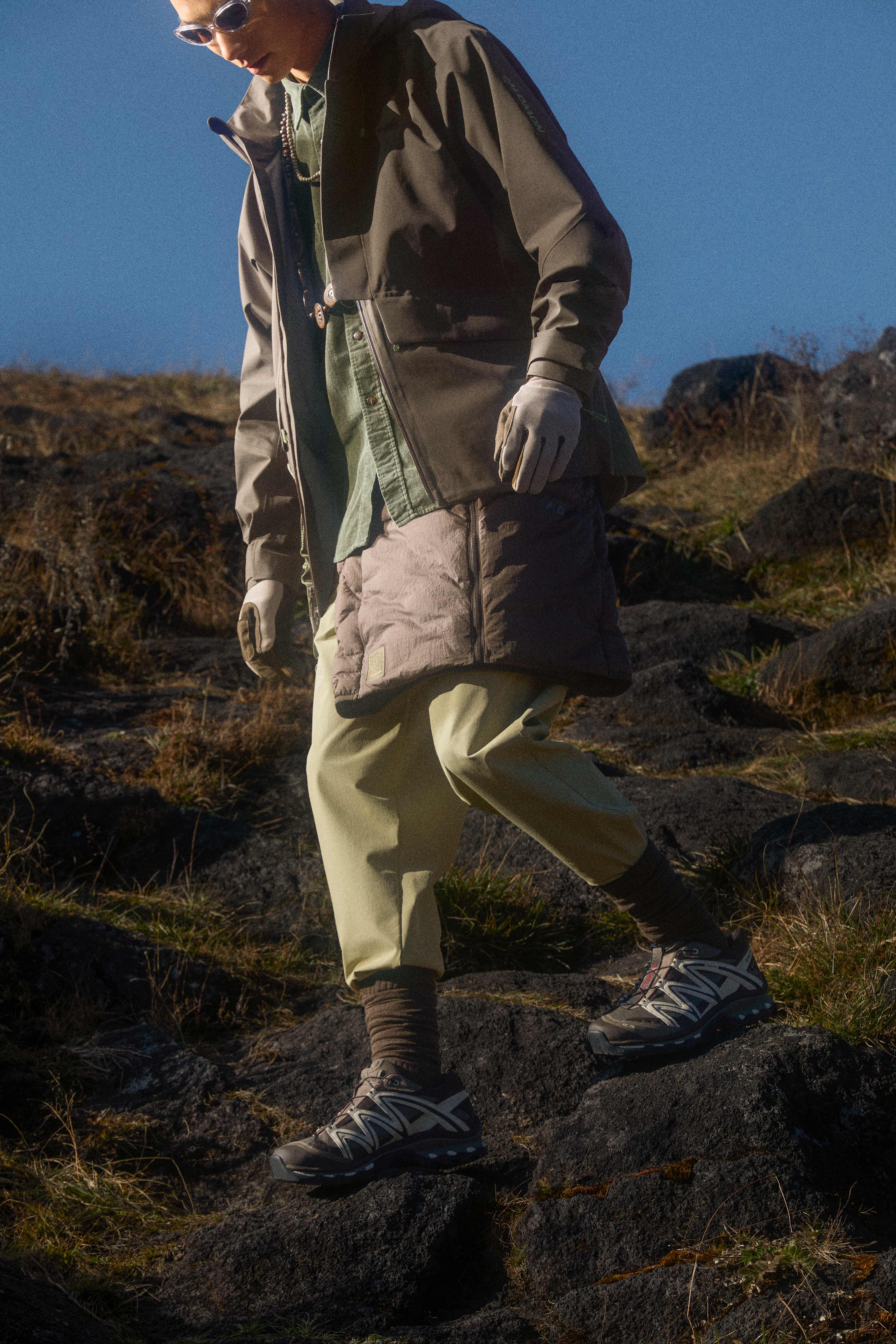 Salomon 茶马古道系列长裤以古道上的自然与人文印记为灵感源泉,并在左侧侧袋统一饰有“马”变形文字标识,作为古道的标记和⌈"心‘响’事成”⌋ 的视觉象征。该长裤分为男款和女款,男裤采用防风锥型剪裁,后腰半圈内置弹力橡筋,提供活动伸缩空间;女裤则从马术裤中汲取灵感,采用高腰设计配合防风锥型剪裁,并可通过腰部按扣调节松紧;两款长裤裆部皆采用三片式立体剪裁,优化活动空间。Salomon 茶马古道系列长裤同样提供两款配色,茶色款灵感源于百年茶砖,主色调如茶汤般温润,搭配深褐车线仿若岁月痕迹;黑色款则取自古道上的青石板与群山,以深沉的色彩表达厚重的质感。设计将古道精神融入日常穿搭,陪伴穿着者从容前行。