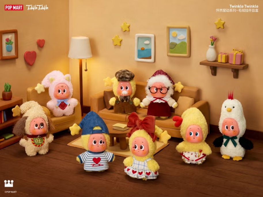 星星人俯身观察人类世界,发现爱的答案藏在每一次心动凝望、每一句轻声絮语,以及每一份自我珍视之中。此次怦然星动系列毛绒挂件盲盒,便将这抽象情感转化为可拥抱的实体,所有毛绒产品均配有挂扣,可将这份柔软陪伴随身携带,让星星人成为日常穿搭中的灵动配件。该系列的八款毛绒挂件代表爱的使者,构成四组甜蜜CP,讲述从萌芽到永恒的旅程。