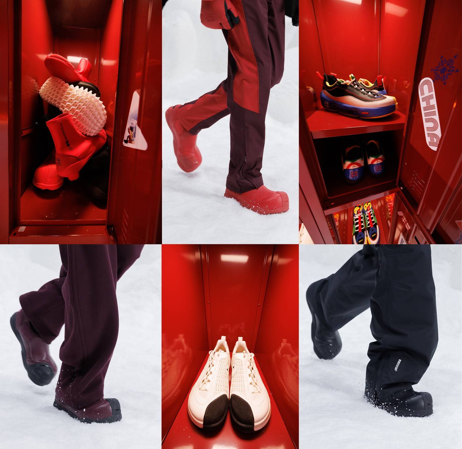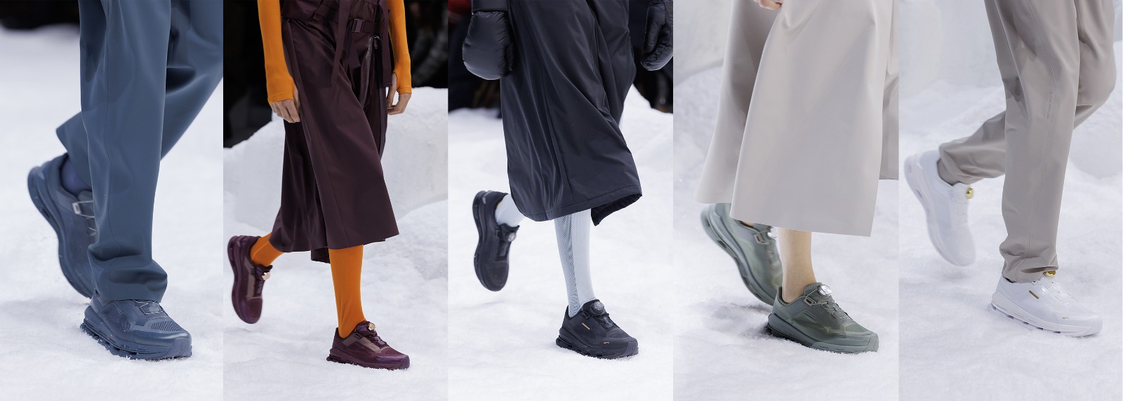 本秀鞋履产品成为表达李宁冬季时尚运动风格叙事的重要载体。在运动基因的加持之下,打造出中国李宁鞋履的多元矩阵,全新亮相的游侠2.0以潮流户外为基调,从山川湖海的意象和人与自然的关系中提取设计元素,结合实用机能设定,带来兼具传统文化底蕴与现代功能的全新迭代产品。烈骏ACE 3.0 作为中国李宁标志性IP鞋款,凭借其复古夸张的结构廓形和提取自战马肌肉骨骼的设计灵感,系列前作已连续多季成为国际时装周亮点,本次更将其复古时尚张力升级,带来全新限定配色。以李宁先生在2008年北京奥运会点燃主火炬台的高光时刻所穿着的鞋款为蓝本,推出“弓ACE”鞋款;悟道家族,依旧继承东方哲思,在保留核心视觉符号的同时,推出多款全新鞋型,包括以冬季雪地靴为灵感的“悟道BOOT”;采用一体袜靴设计的“悟道3.0 MID”;首次采用超䨻3D打印技术的“悟道FUTURE”则是一次以前沿科技演绎东方美学的大胆尝试;“悟道ACE 3.0”、“悟道3.0”更以曾惊艳纽约时装周的魔方配色全新亮相。