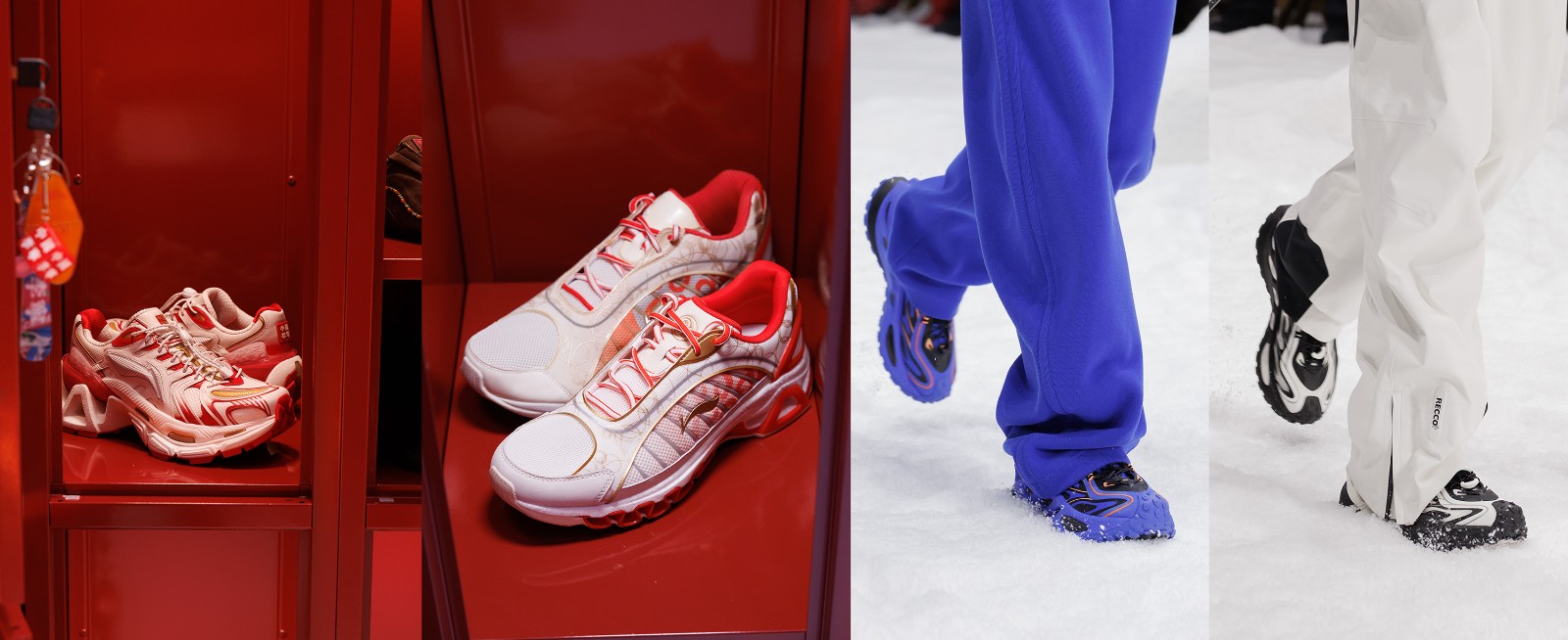 中国李宁本季女子鞋履带来适配多元场景的进阶表达,全新“玲珑RACER”,以赛车运动为灵感,结合流畅线条,营造出高级优雅的复古氛围,是时装和运动的全新结合。“贴地飞行ACE”,灵感源自李宁经典羽毛球鞋,以复古未来的风格打造出全新的先锋形体。芭蕾风格的“玲珑”和复古风格的“乒乓”,也围绕本次秀场的主题,推出了更加多元的材质和配色。另外,品牌推出以啄木鸟头部生物缓冲系统为灵感的多级缓震结构概念鞋款,极具未来感和实验性。