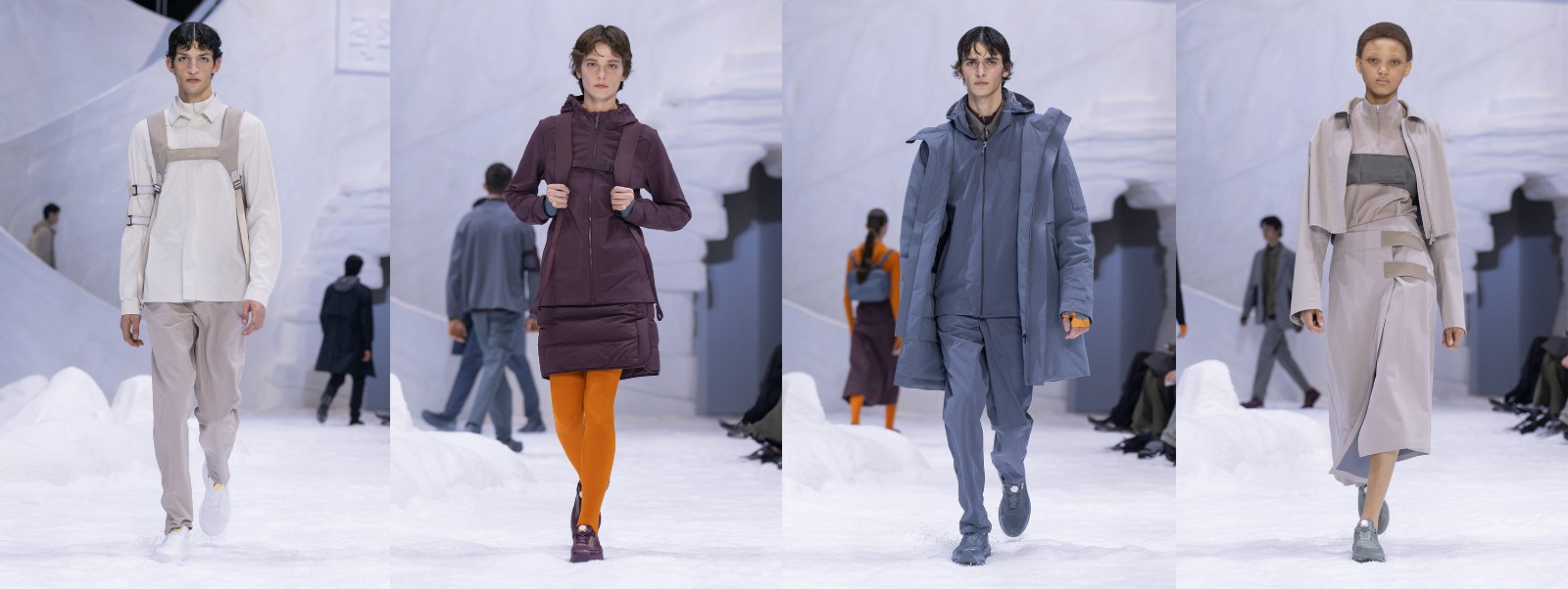 2026秋冬系列所呈现的体育精神超越了竞技本身,以更为普世的视角,致敬每个人内心的运动员精神,那是一种对坚韧前行的执着、对突破自我的追求,通过这场沉浸式的大秀得以完整呈现,构筑一段跨越时间与空间的旅程。2026秋冬系列大秀呈现了两个既独立又相互关联的系列,二者皆围绕「THE ATHLETE IN ALL OF US」这一主题展开。