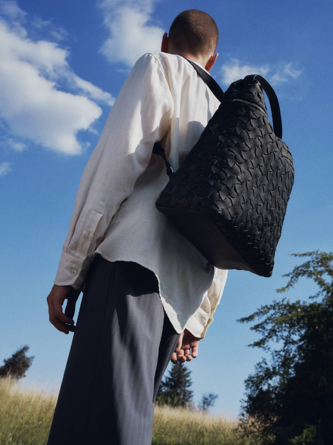 完整的Intreccio Chunky编织厚底鞋系列,以皮革与网眼拼接、麂皮与氯丁橡胶融合,及纯黑演绎,构筑出本季的立体风格维度。橄榄绿/黑色与全黑两款编织厚底乐福鞋,亦为日常穿搭注入崭新语汇。本季男士鞋履焦点Moena运动鞋,此番推出深邃海军蓝与醇厚勃艮第红两款新色。其沿用博洛尼亚(Sacchetto)构造——一项繁复而备受尊崇的传统工艺,令鞋身如手套般贴合双足,缔造出众的舒适感、极致轻盈与灵活柔韧。