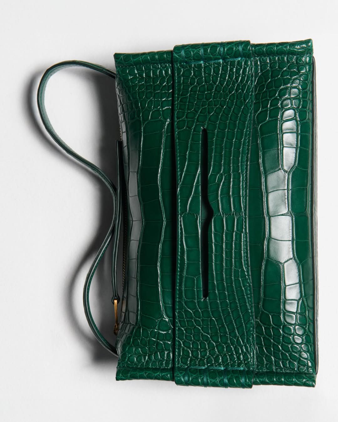 JW ANDERSON标志性的、略显怪诞而充满创意的经典单品——飞行夹克、打结连衣裙、趣味针织,以及“不那么基础”的基础款——都以一种轻快而自然消解性别界限的态度焕新回归。配饰系列亦随之演变:Anchor Tote加入图案处理,而Loafer Bag则以松绿色鳄鱼皮材质呈现全新版本。