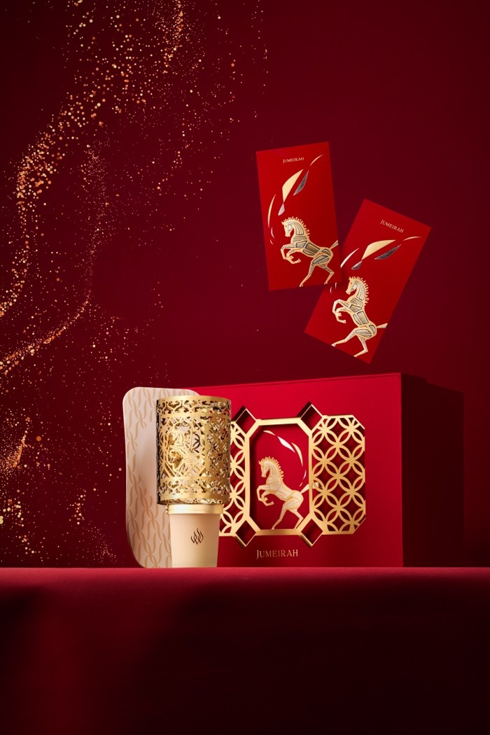 尊尚礼盒延续了这一文化交融的主题,将迪拜卓美亚古堡酒店的阿拉伯凸肚窗镂空花格与广府经典元素相融合。礼盒运用温绮雯标志性的分层剪纸技艺制作,包含一个融合传统元素、精湛工艺与当代奢华风雅的高雅香薰旋转烛台。光影透过层叠花纹缓缓流转,骏马意象隐现于光影之间,寓意马年步履向前、顺遂安然。