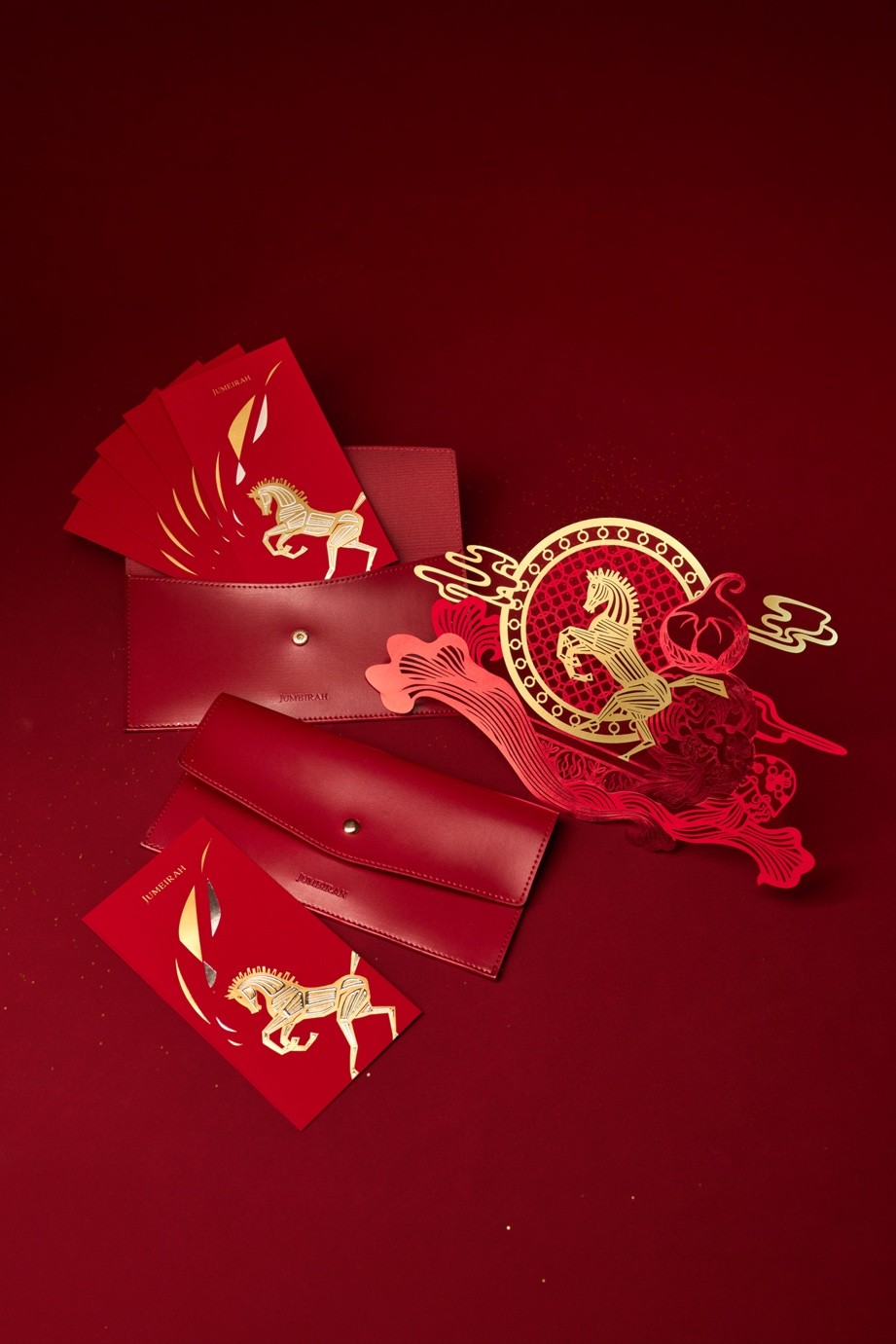 利是封的核心设计元素,是一匹神采飞扬的骏马,灵感来自于迪拜卓美亚古堡酒店皇宫标志性的金马雕塑群。现代风格的插画体现了中阿两国传统文化的共性——都视马为勇气、活力与忠诚的象征,寓意未来一年充满了力量与前行的动力。作品以富有力量感的纸艺语言,构建起跨越地域的文化联结与当代审美表达。