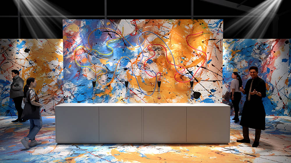标题:以表现主义为灵感的“Drip”展厅装置效果图。图片来源:Central Yards中环艺尝展