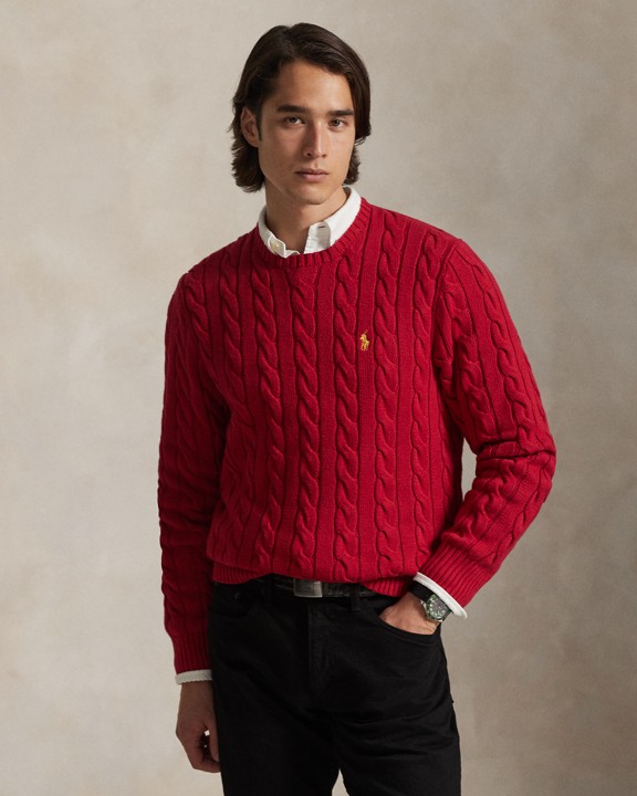 这款绞花编结针织衫属于我们的新年系列,选用柔软的棉质纱线织就,胸前饰有雅致的标志性 Polo 小马刺绣