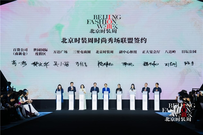 第三批“时尚秀场联盟”签约仪式在开幕当晚隆重举行,随着日坛公园、八达岭、副中心枢纽、南新仓、世园国际度假区、万达广场、正大中心等文商旅热门地标正式加盟,北京时装周“1+N”全域模式再度扩容,城市时尚版图再添全新坐标。
