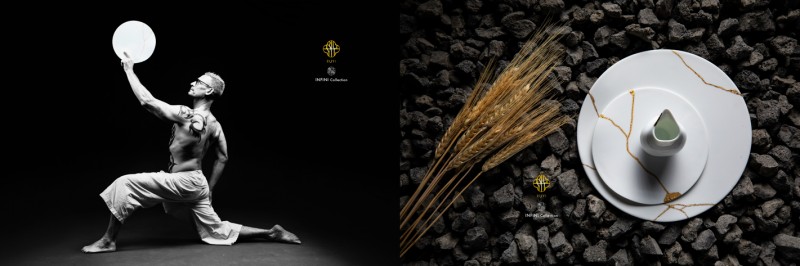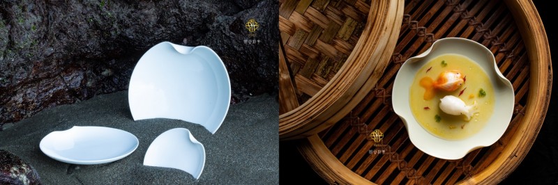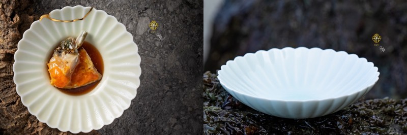 右图:无极系列·手绘金继秀盘与酱汁瓶