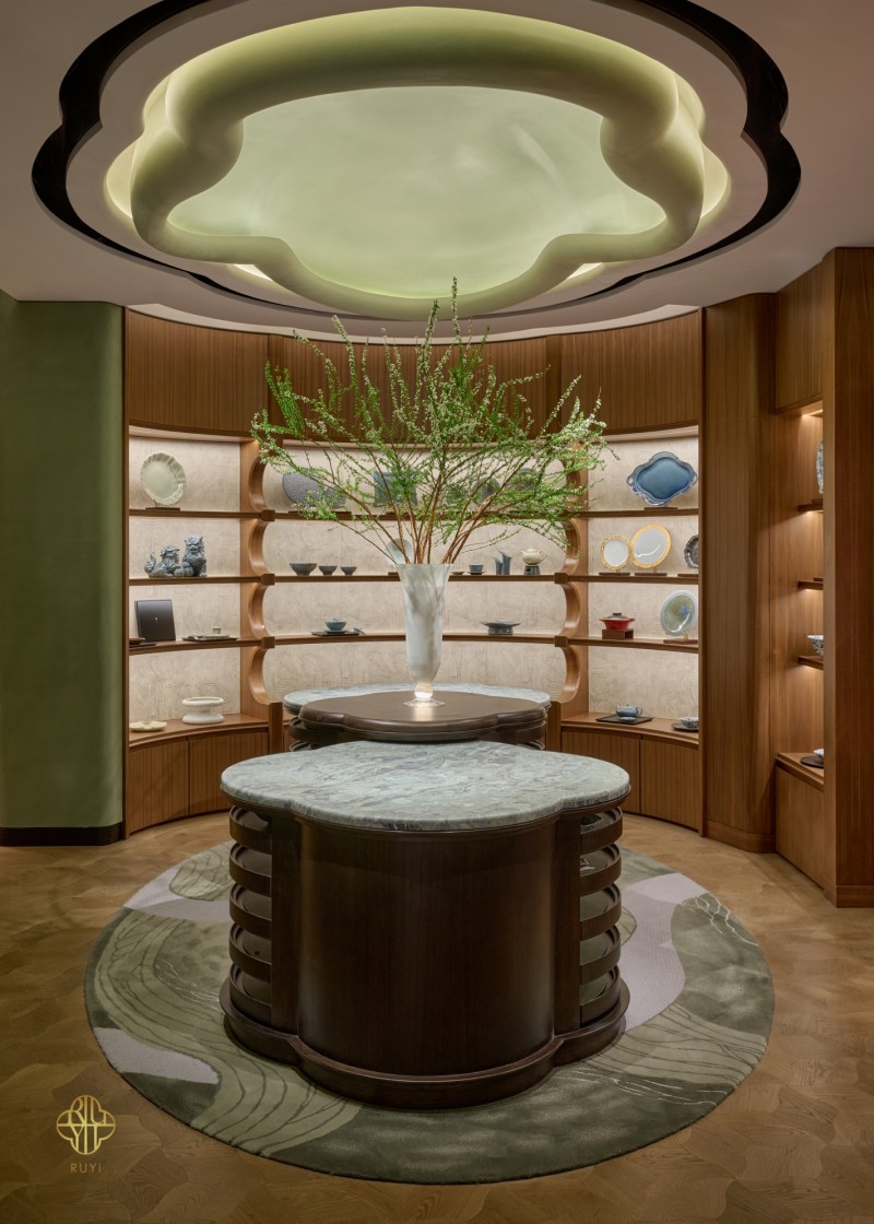旗舰店择址于外滩地标——上海半岛酒店精品廊,特邀近期被《罗博报告》评为“Icon of Luxury”的傅厚民(André Fu)操刀室内空间设计。傅厚民以其含蓄优雅、兼具东方气韵的设计语汇闻名,曾打造京都三井酒店、香港奕居和伦敦克拉里奇(Claridge’s)等奢华酒店设计。傅厚民为「RUYI 如意」打造了一个静谧和谐的空间,并创造一个与品牌品质相匹配、彰显产品高端质感的环境。将空间美学与器物精神相互映照,让器物成为主角,营造出一处可供沉浸感知的东方意境。