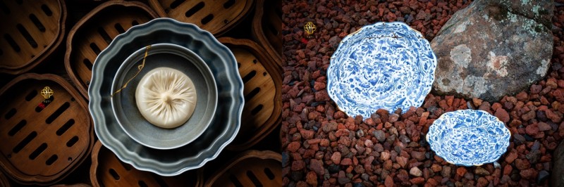 左图:汉唐系列·金继宝石深碟(上) ,宣德系列·苍青平边盘(下);