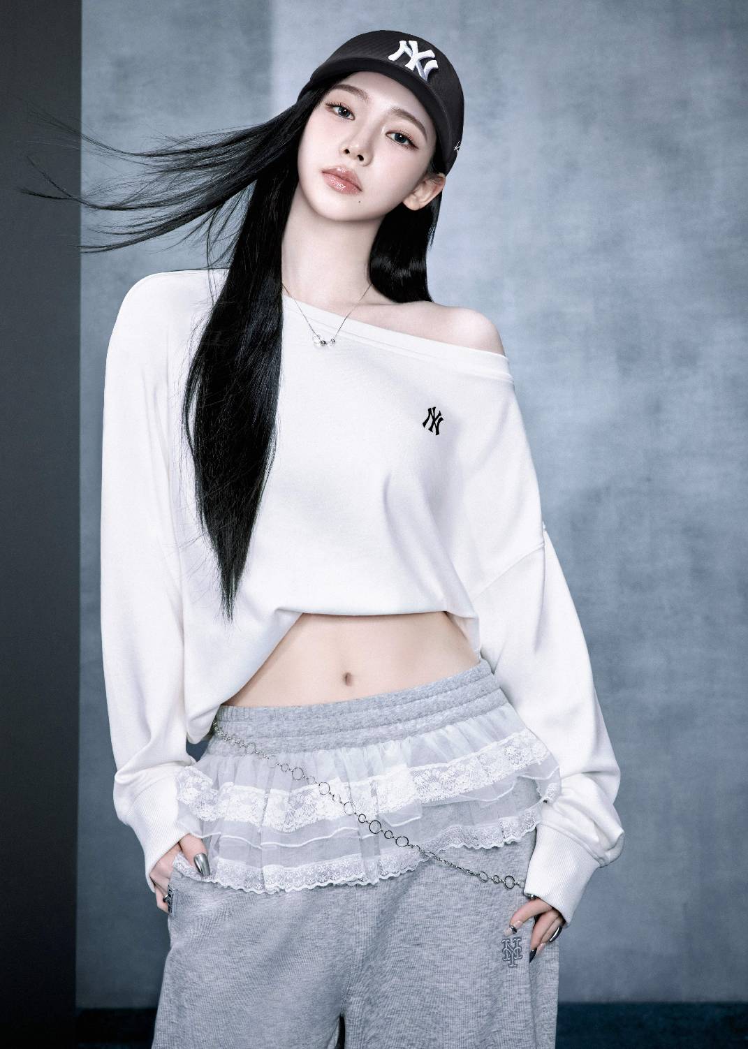 延续MLB一贯的街头潮流基因,KARINA限定胶囊系列以品牌标志性设计语言为基底展开。本次联名是一场跨越文化与审美的双向对话:MLB以美国职业棒球文化为源,融合队标符号、复古廓形与街头属性,塑造自在且有态度的潮流表达;KARINA则以利落线条、未来感与舞台表现力为核心,呈现新生代偶像的先锋美学。二者碰撞不仅拓展了MLB在年轻圈层中的表达边界,也让KARINA的风格从舞台延伸至日常,实现从“偶像形象”到“时尚符号”的转化。