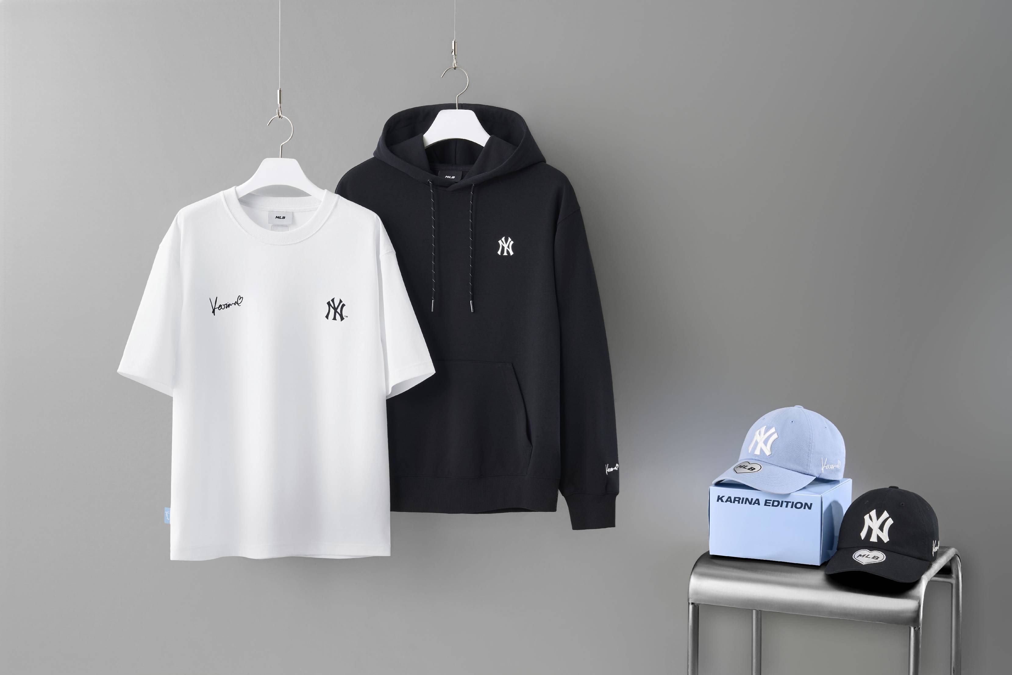 本次联名系列围绕KARINA与MLB高度契合的街头态度展开,涵盖棒球帽、连帽卫衣及T恤等多款限定单品,构建鲜明的先锋潮流风格。其中,KARINA限定棒球帽以品牌经典版型为基础,点缀爱心贴纸与艺术签名细节,并推出专属SKY BLUE配色;连帽卫衣在经典廓形上升级面料与工艺,于细节处融入隐藏式IP元素,呈现低调而有态度的质感表达;主题T恤则将签名与球队标识巧妙融合,强化系列的专属属性与个性表达,为整体造型注入完整的风格叙事。