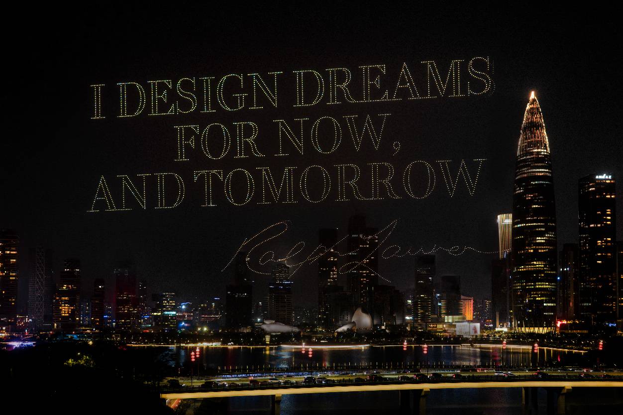 夜幕低垂,千架无人机翩然升空。微光渐聚,勾勒出优雅从容的骏马姿态,似踏浪而行,气韵生动。骑手身影渐显,挥杆之间驰骋向前,尽显奔涌之势。万千光影汇聚,化作品牌经典小马标,定格于深圳夜空。最终,劳伦先生精选语录“I DESIGN DREAMS FOR NOW, AND TOMORROW” (我所勾勒的梦想,为当下、亦为明日)映入夜幕,激励每一颗追求梦想与恒远的本真之心。