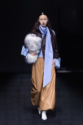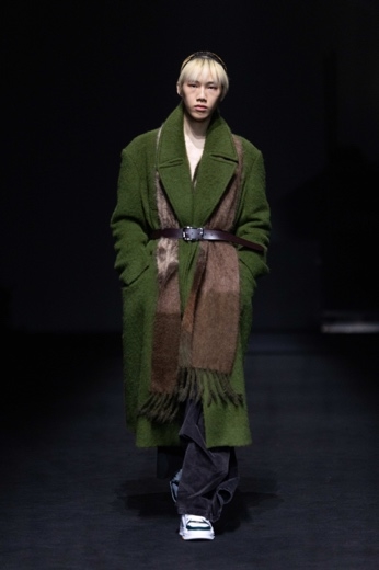 与此同时,女装在共享的根基之上发展出鲜明的个性。它保留了品牌标志性的力量感,又在硬朗廓形中注入流动线条,在理性剪裁中为情感留出空间。本季女装既有利落西装延续男装的结构语言,也有以柔软针织与丝绸呈现的飘逸大衣——刚与柔并存,理性与情感交织。每一件单品都延续了品牌“不完美之和谐”的美学:解构剪裁中刻意保留的毛边,成为时间的印记;面料水洗带来的细微色差,让每件衣物都独一无二。