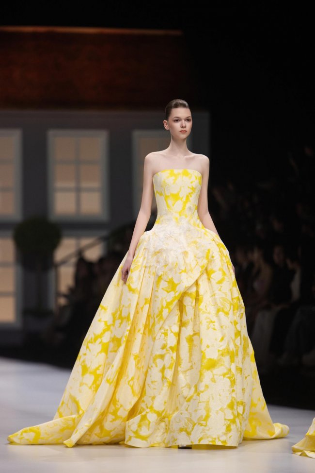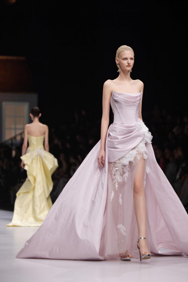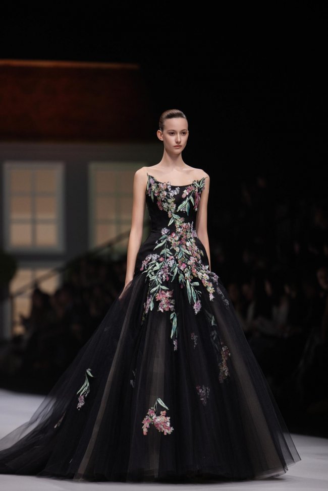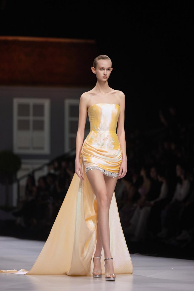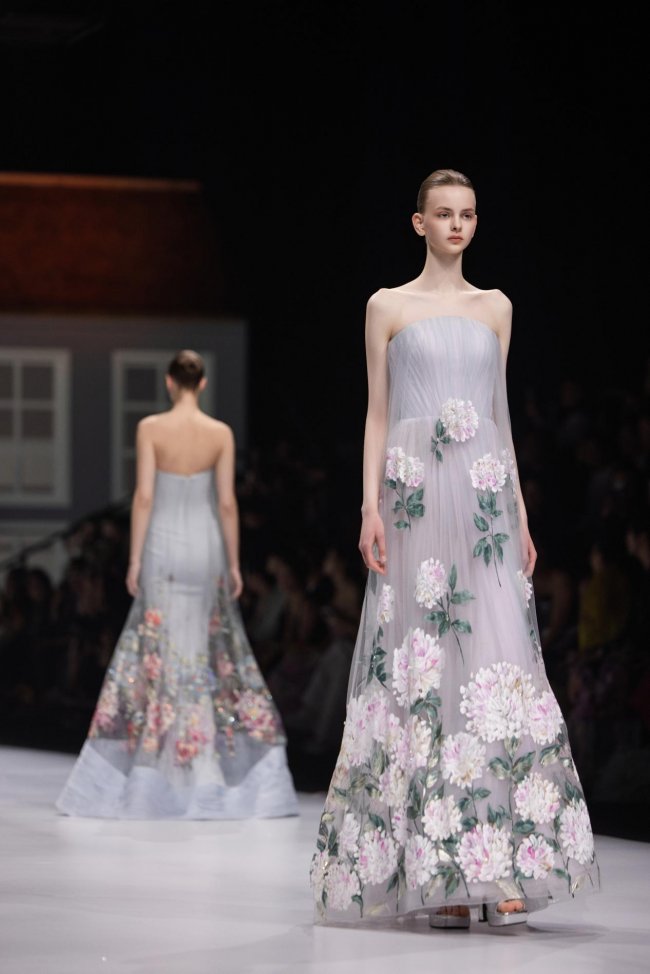 本季系列将微观的精致放大至现实的秀场之中,以女孩的成长心事为脉络,将藏于玩具屋中的美好向往,化作一针一线的高定诗意。女孩幼时憧憬一间属于自己的小屋,安放心爱衣裳与烂漫幻想;长大之后,以华服筑造心灵居所,盛放对生活与美的全部热忱。礼服之上,繁花皆为纯手工彩绘,笔触细腻灵动,色彩温润雅致,宛若将玩具屋里珍藏的春日花园,妥帖安放于衣袂之间。轻盈薄纱与挺括缎面温柔相拥,古典廓形与现代剪裁交织成诗,让童年对美的初心,在岁月深处静静生长、优雅绽放。