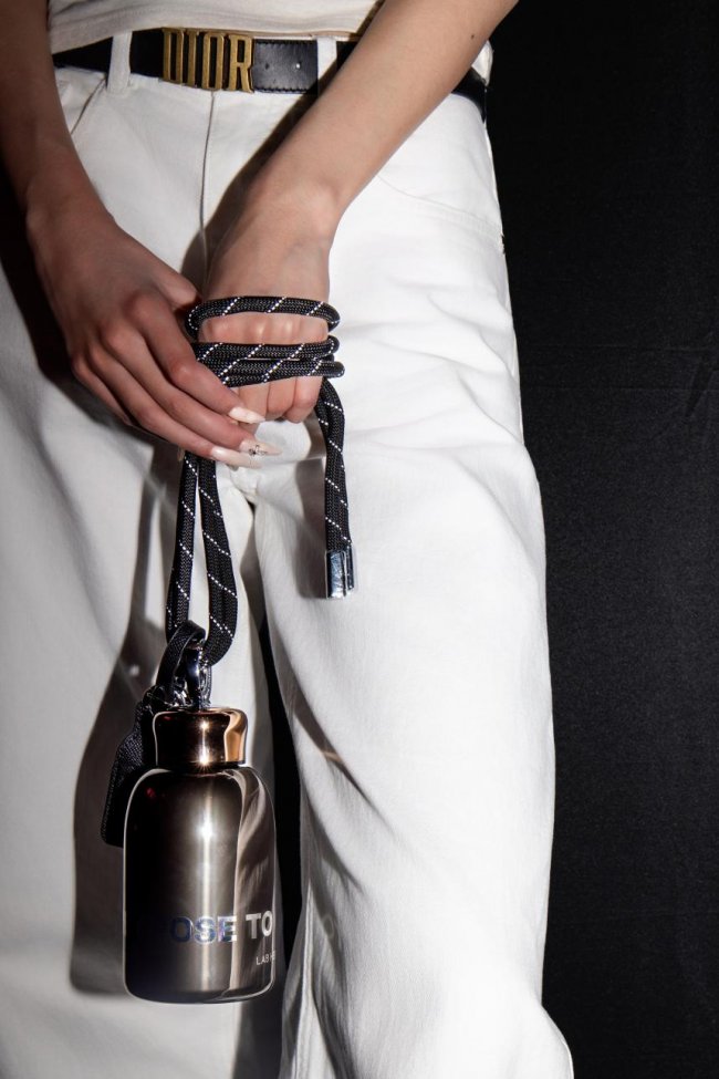 在后场空间中,模特在妆造、候场与转换节奏之间,LAB HEENOOR产品作为实际使用被自然融入其中。产品不再作为展示对象出现,而是进入到服装、人物与空间共同构成的使用关系中,成为秀场体系的一部分。这种嵌入式的方式,使品牌表达从“被观看”转向在被使用中成立。