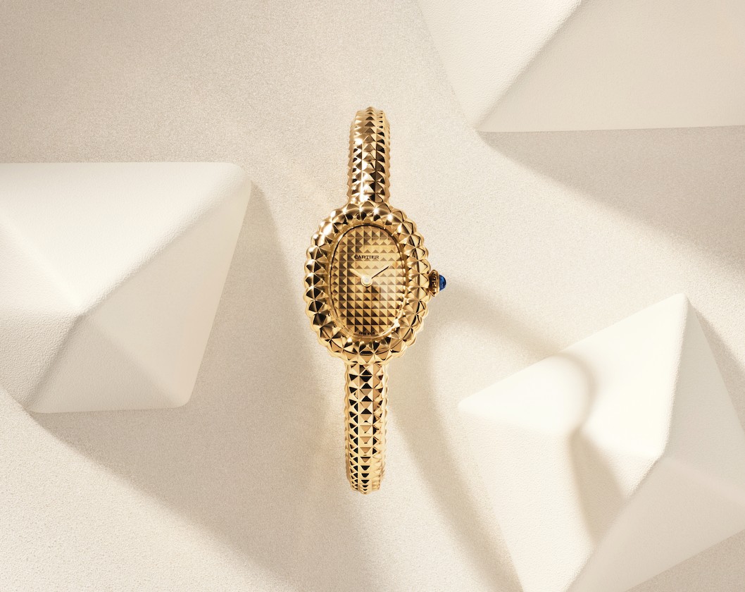 今年,卡地亚以标志性的巴黎饰钉元素重新演绎Baignoire手镯式腕表。早在20世纪20年代初,巴黎饰钉便已成为品牌标志性设计语言之一,其历久弥新的魅力在Baignoire Allongée腕表及Clash de Cartier系列中皆得以充分展现。巴黎饰钉的制作工艺展现了卡地亚精湛的珠宝技艺,在塑造黄金立体造型的同时,保持其形态与体积的均匀一致。
