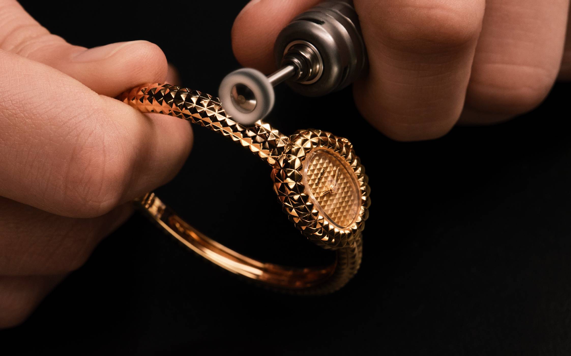 卡地亚珠宝工匠通过细致入微的抛光工艺,赋予作品耀眼光彩。这项完全由手工完成的润饰步骤必须高度精准,以确保巴黎饰钉的立体构造得以完整保留而不被磨损。