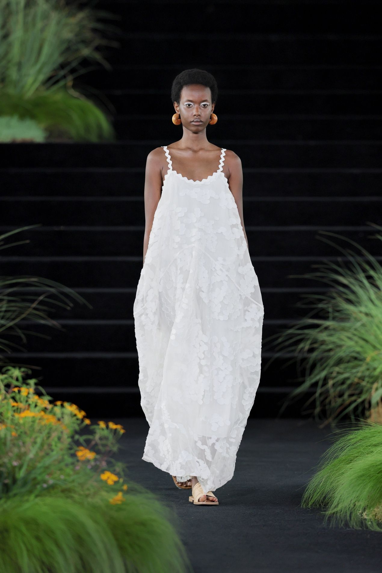 仿生的本质,是让衣服获得某种生命体的形态、动态,或是存活的智慧。尽管这一语言在时装界并不独有,但ZHUCHONGYUN式的仿生自有其路径,一是不追求形态的精确复刻,而着意于东方美学特有的“离形得似”;二是所仿之物既有生灵,也有生态,更见天地之大。