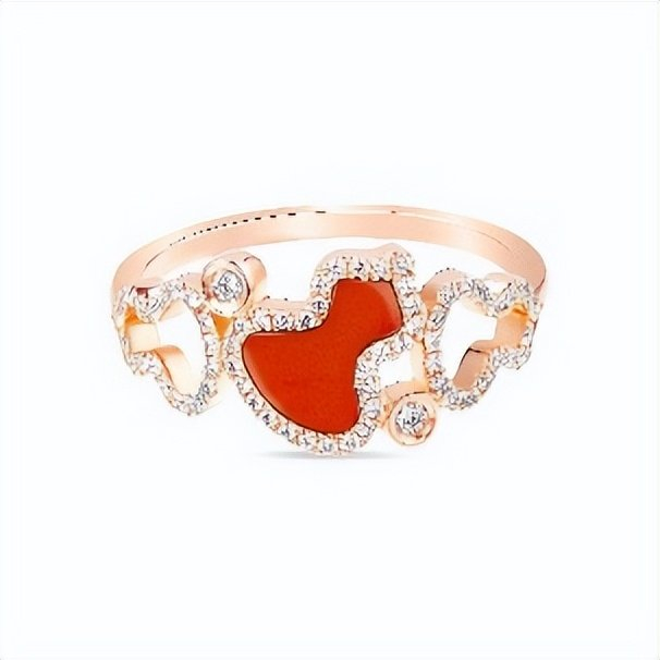 WuluWulu 18K玫瑰金红玛瑙钻石戒指