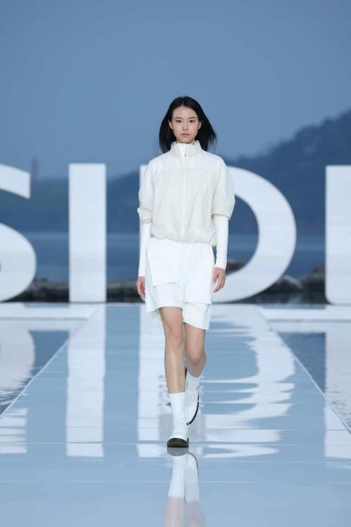 大秀选址雁栖湖畔,湖面波光、远山肌理、落日余晖与舞台背景浑然天成,将波司登本季产品“都市与户外无界切换”的理念化为沉浸式的感官体验。