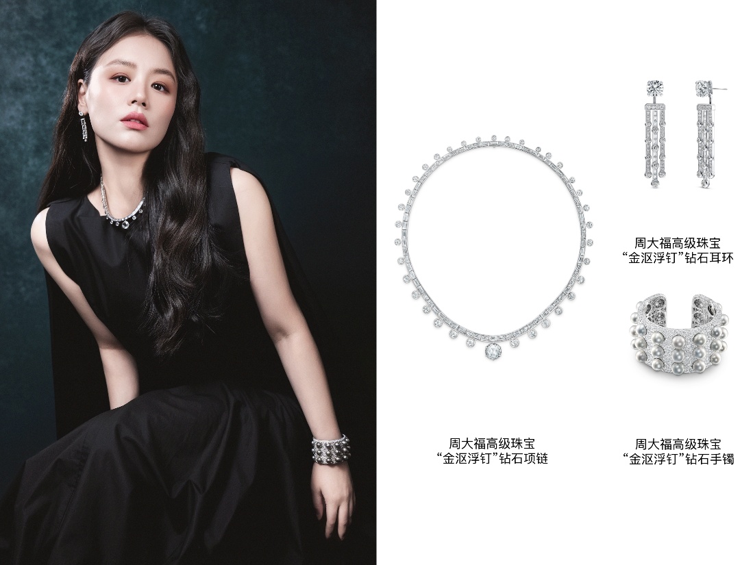 马思纯佩戴周大福高级珠宝和美东方系列“金沤浮钉”